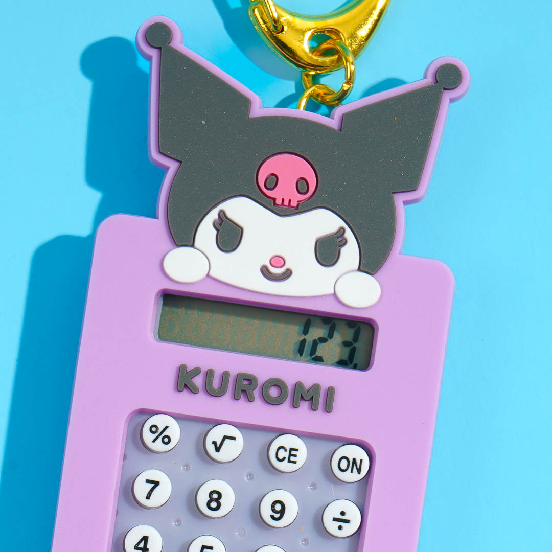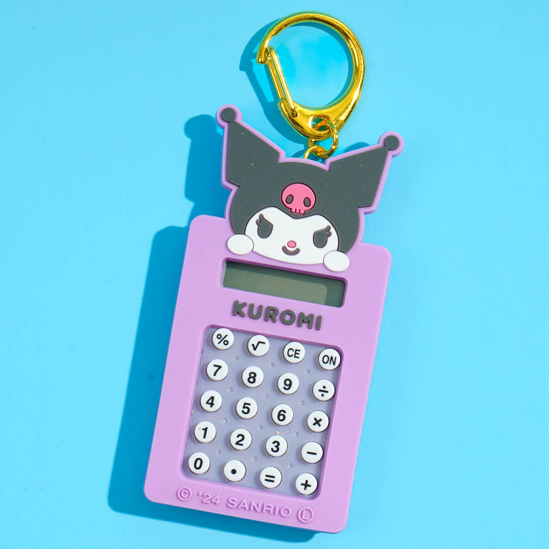 Do quick computations while you're out shopping with this mini calculator! It features Kuromi's pretty but mischievous face and a metal clip so you can easily attach it to your bag.
