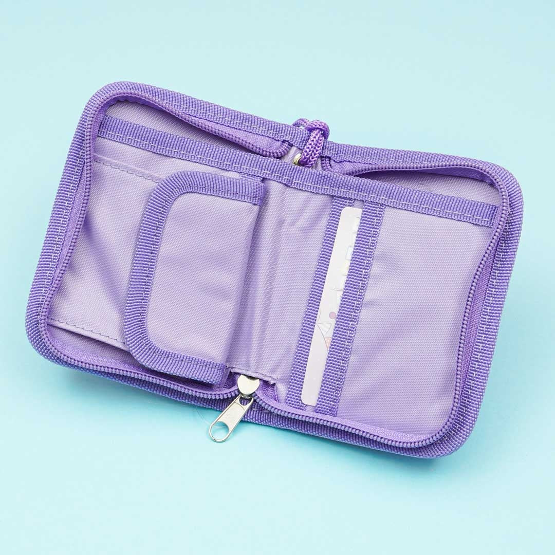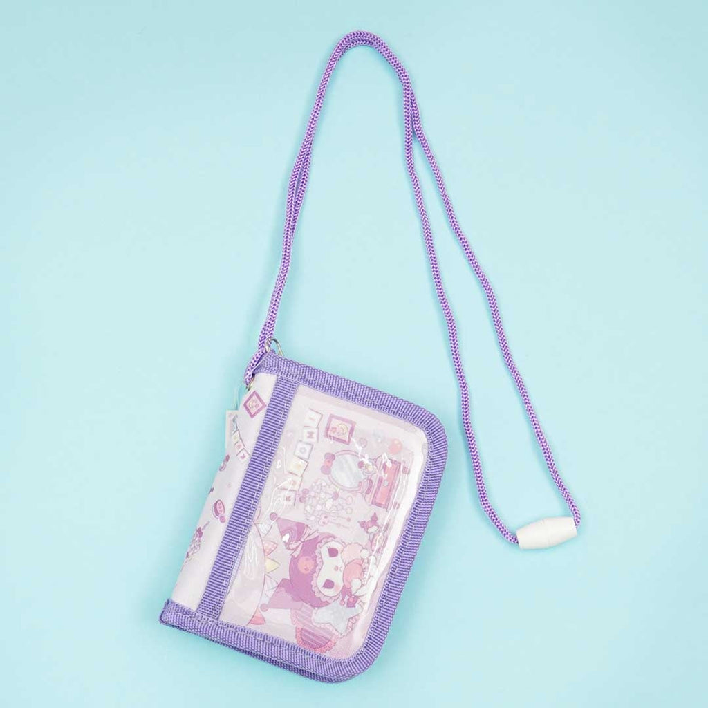 This super cute kid's wallet showcases prints of Kuromi in her room! It has a zipper closure, a card pocket, a coin case, and a long strap. Use it to store your cash and coins!