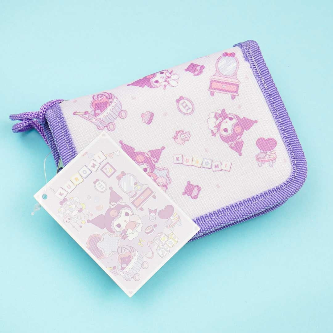 A kawaii kid's wallet illustrated with Kuromi relaxing in her room