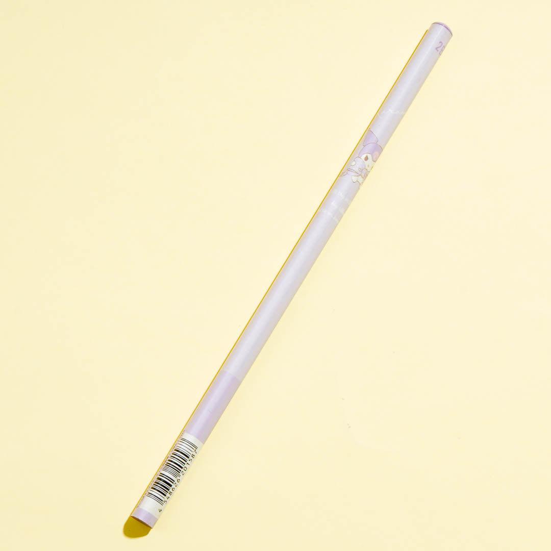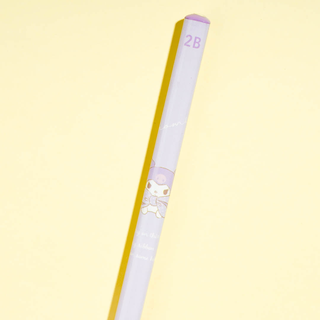 This kawaii 2B graphite pencil features a print of baby Kuromi wearing a big ribbon bow! Use it to practice drawing and sketching. It has a triangular body which makes it easy to grip.