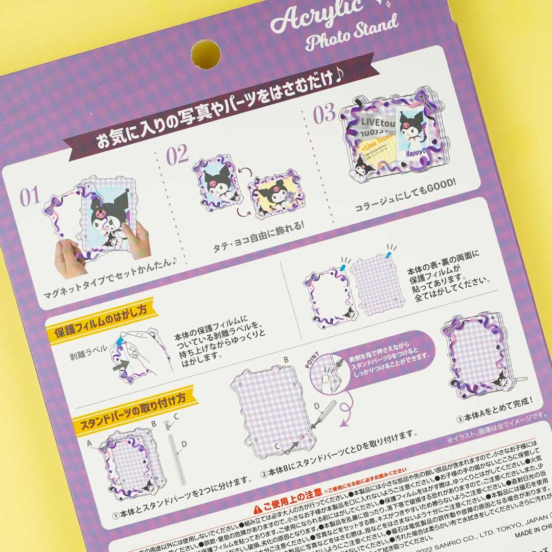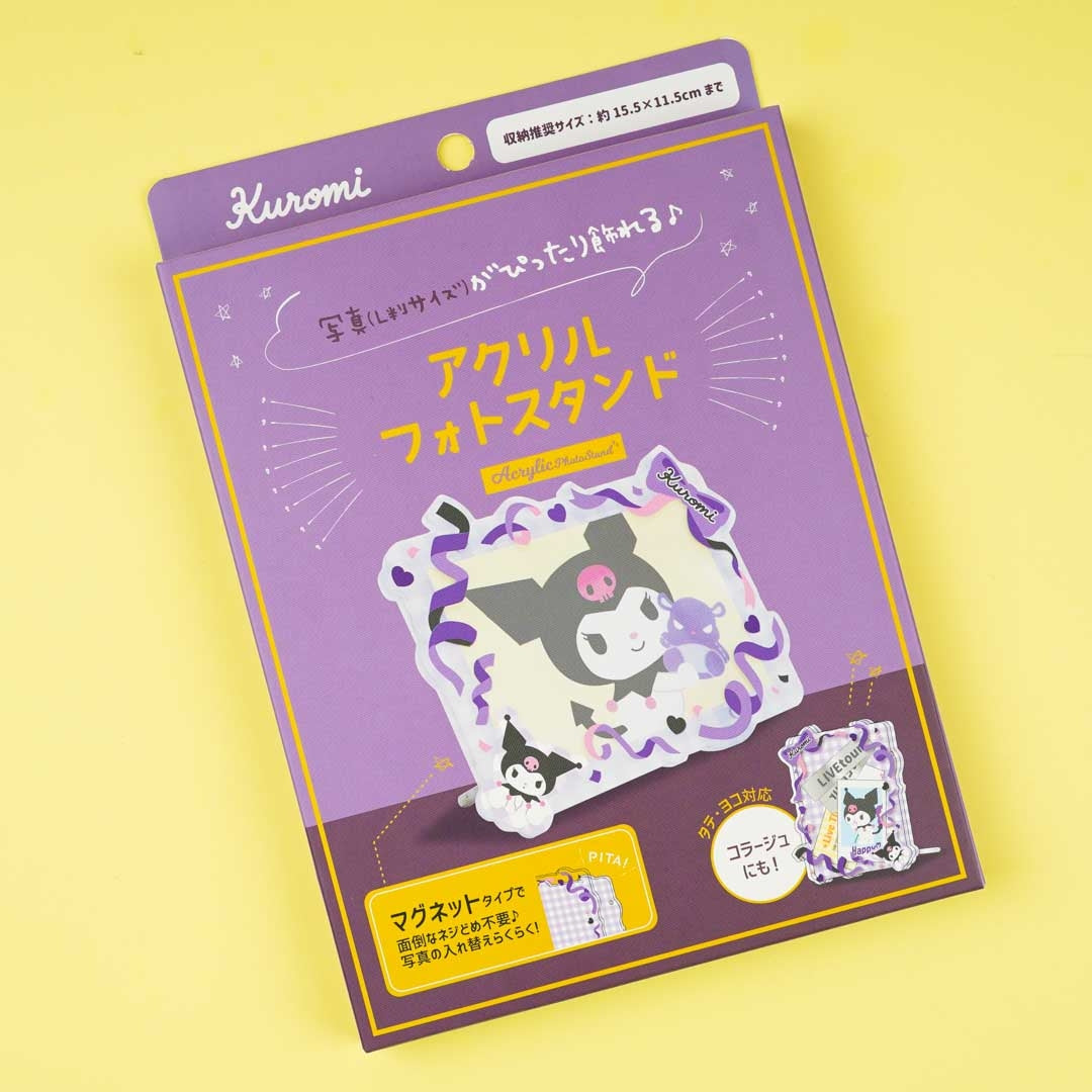 Show off your favorite photo of your idol by placing it on this cute acrylic stand! It features kawaii prints of Kuromi surrounded by lots of ribbons! The frame fits large-sized photos vertically and horizontally and can also be switched easily as it has magnets — so you can open and close them easily!