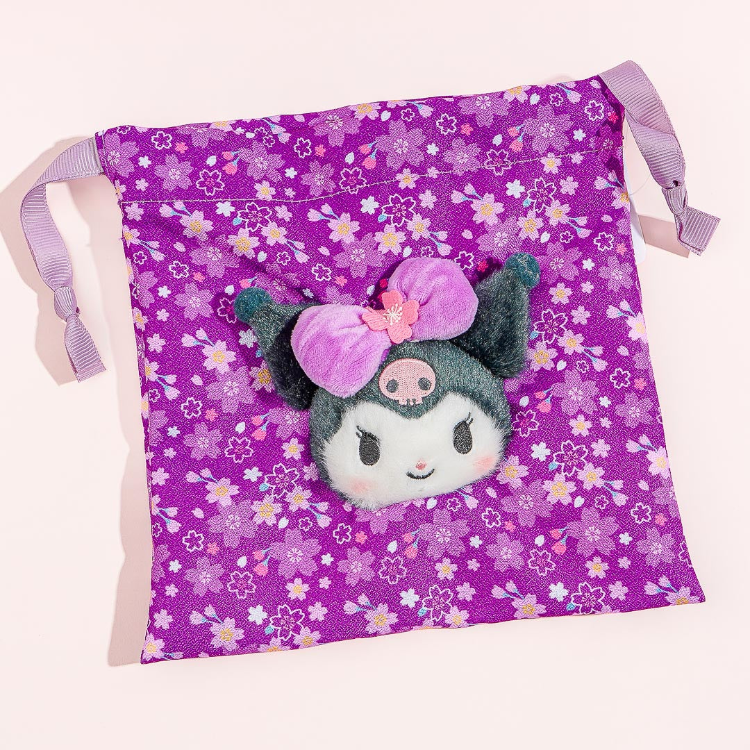 Kuromi Sakura Kimono Drawstring Pouch With Plushie Head Charm