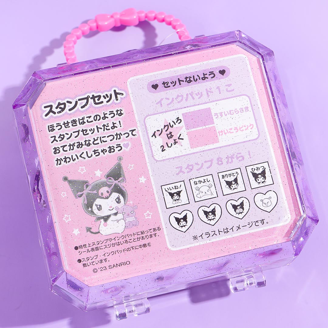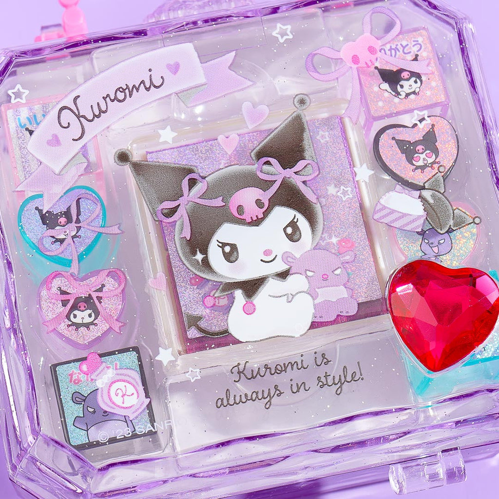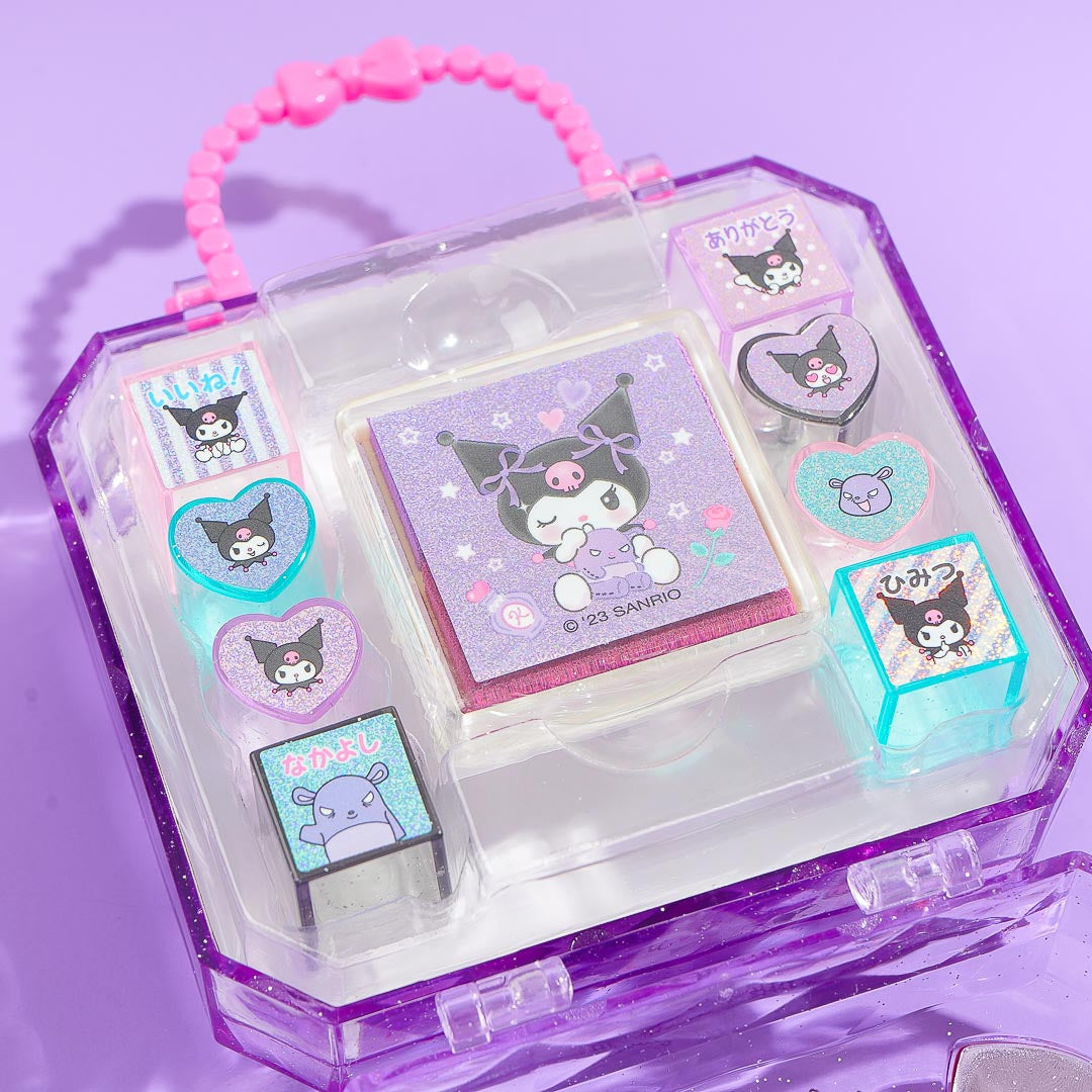 This super cute stamp set is the perfect gift for your kawaii-loving friends! It features glittery rubber stamps with cute Kuromi prints. The set comes with a sparkly acrylic case that's shaped like a jewelry box.
