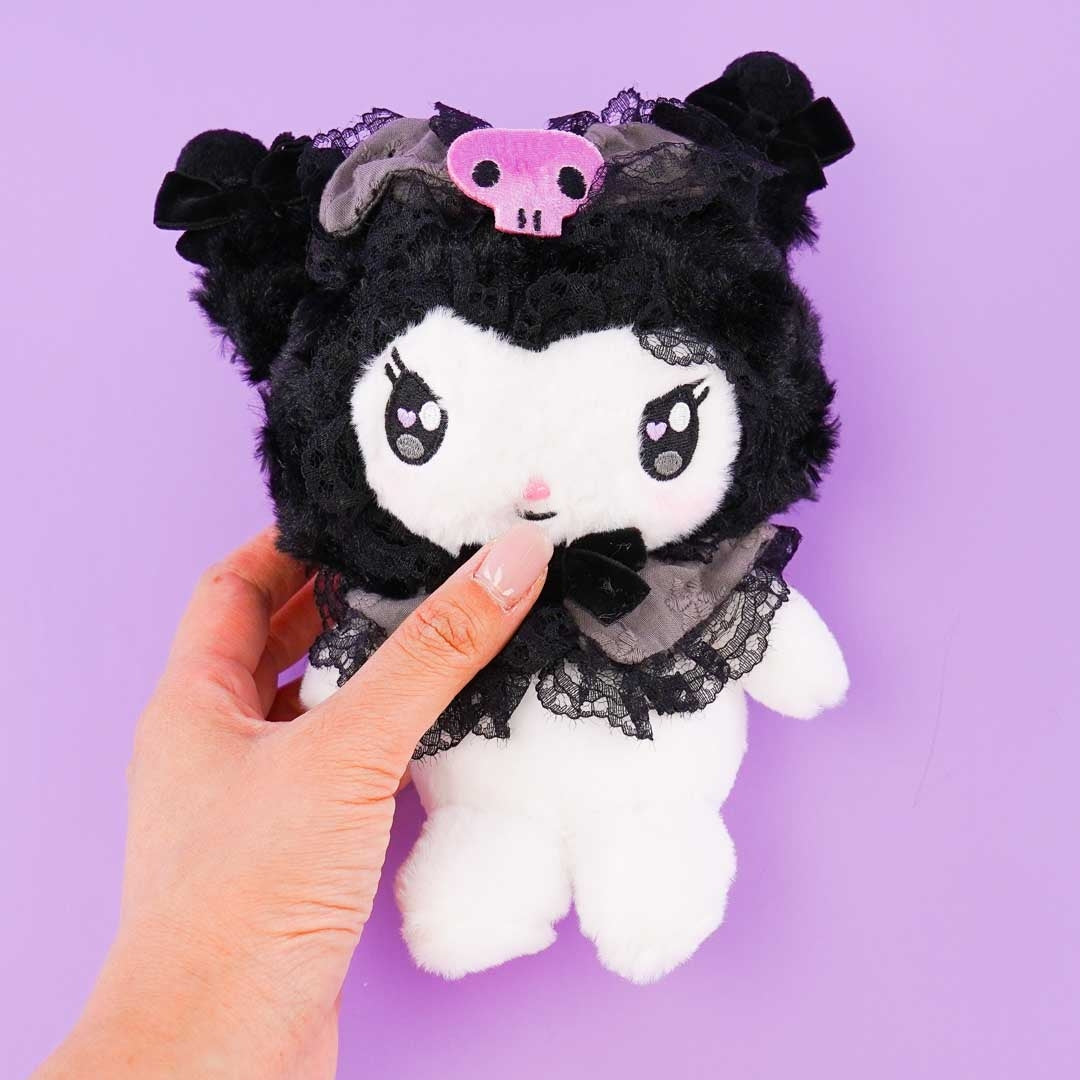 • A kawaii medium-sized Kuromi plushie in a Sweet Lolita outfit