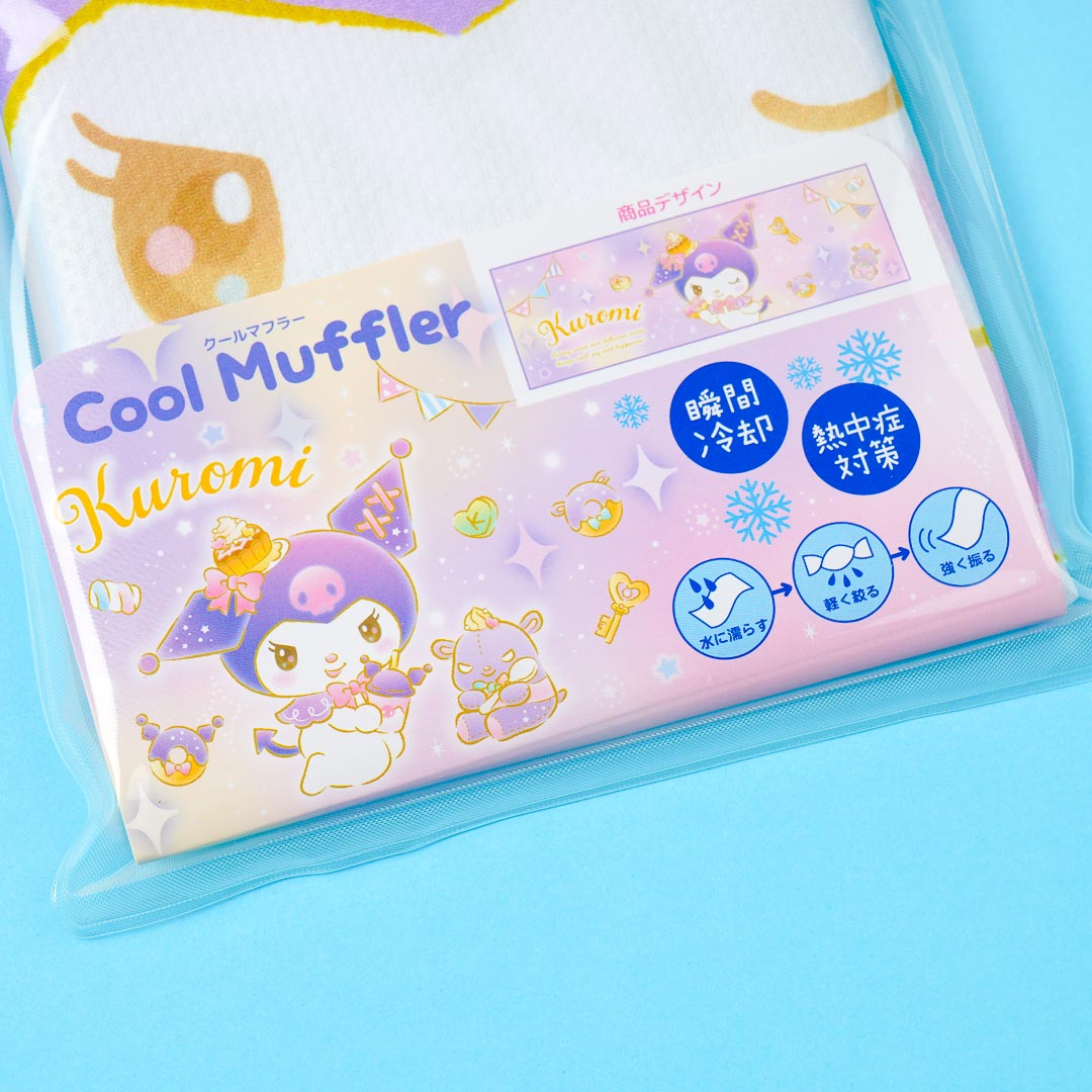 Fight the heat with this kawaii cool muffler featuring illustrations of Kuromi and sweets. Simply wet, wring, and shake the towel vigorously before putting it around your neck to feel the cooling effect. It's easy to bring when you travel on a hot summer day!