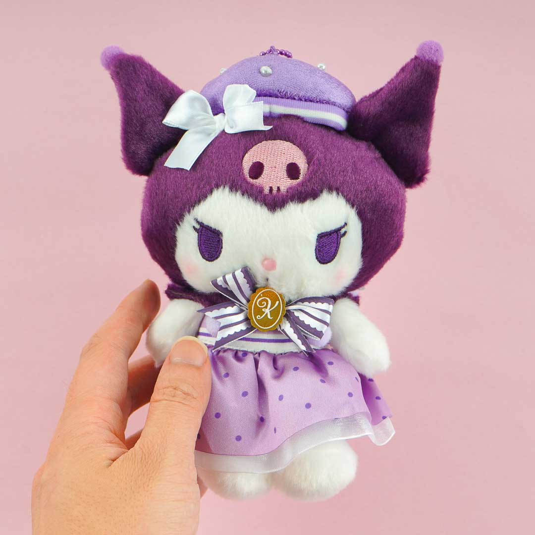 Snuggle with this medium-sized cutie as you take a nap! This kawaii Kuromi plushie wears a formal purple dress and matching hat that’s perfect for a tea party. You can also attach this plushie to your fave tote bag so you can take it wherever you go!