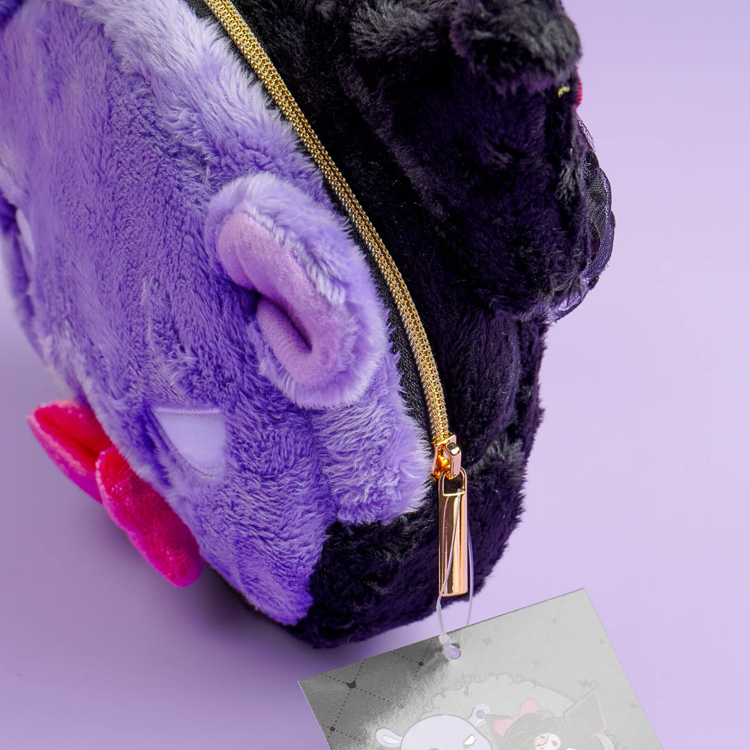 Store trinkets inside this cute and unique zippered pouch! It has a double-sided design. One side is Kuromi's face and the other is the face of her bestie, Baku.