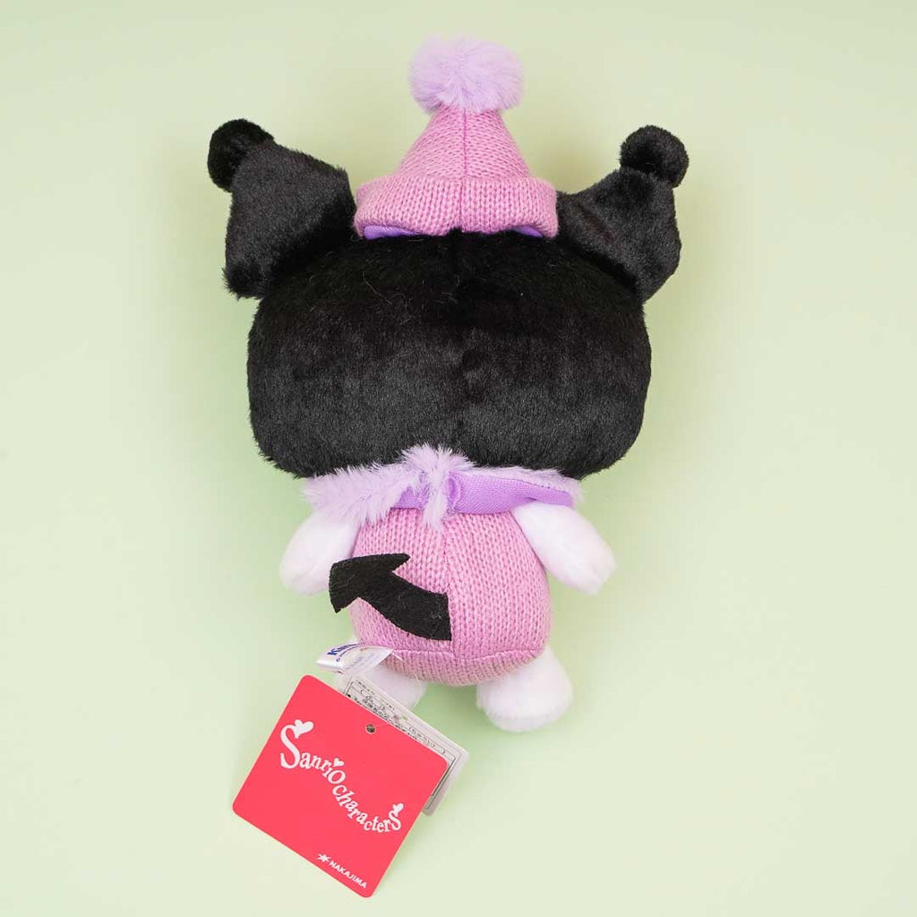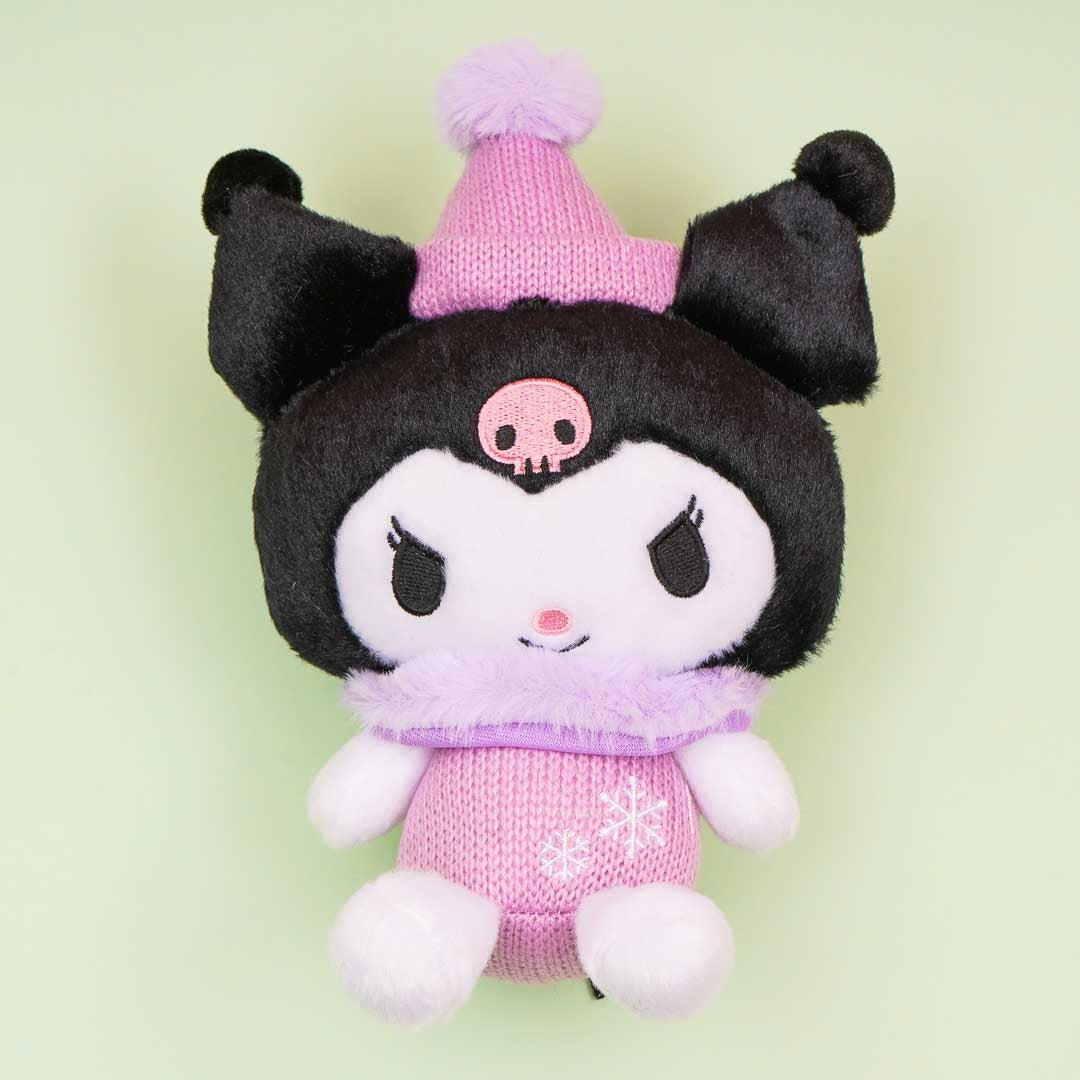 Enjoy the holiday season and cuddle with this fluffy Kuromi plushie! This medium-sized pal is wearing a super cute knitted winter outfit with snowflakes decor.