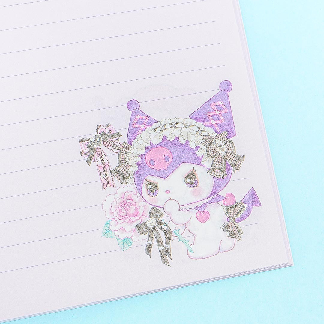 Have fun jotting down ideas in this super cute notebook! It’s decorated with a kawaii illustration of a sparkly-eyed Kuromi in a fancy Lolita-style outfit and is surrounded by hearts and bows! The special design was specially created in collaboration with Japanese artist, Fumika Amenomori and Sanrio.