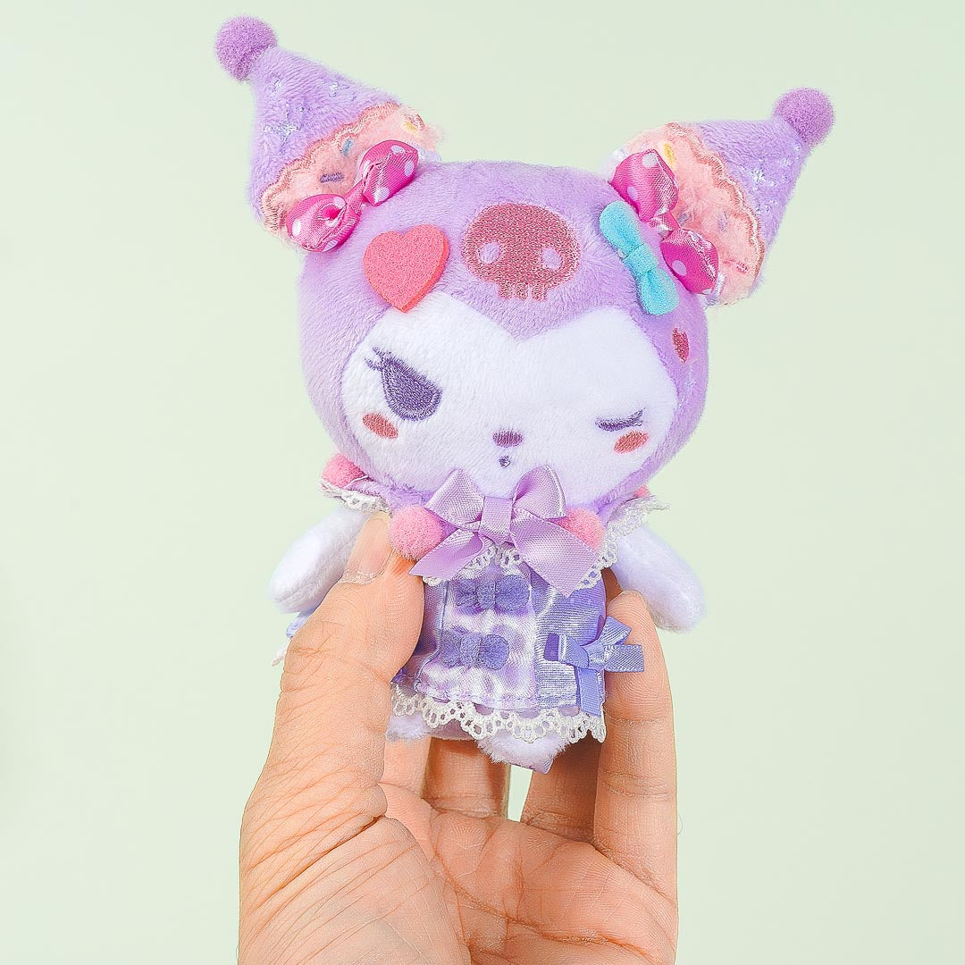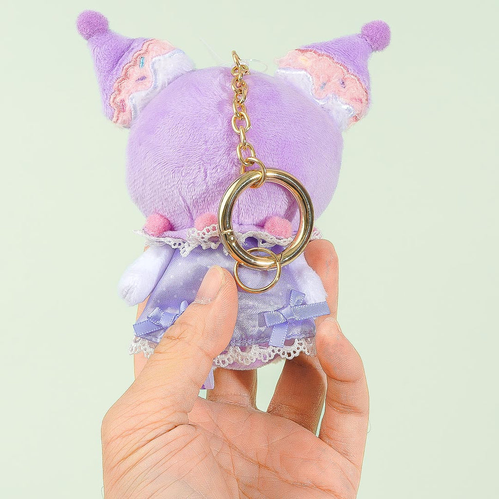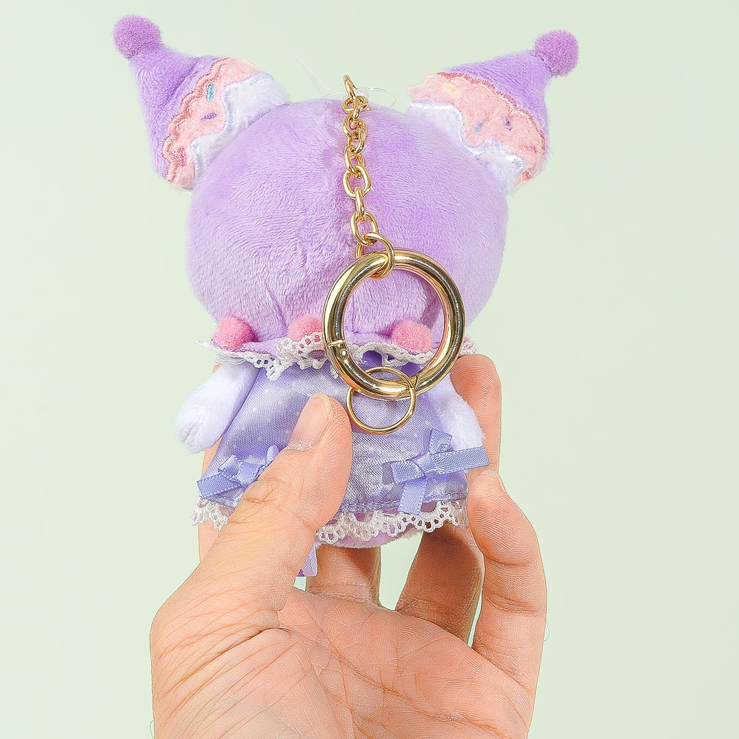 This Kuromi plush charm is the perfect addition to your school bag! It looks like a Lolita doll and features a metal ring that you can easily attach to your bag. This plush charm also comes with a hook for your keys.