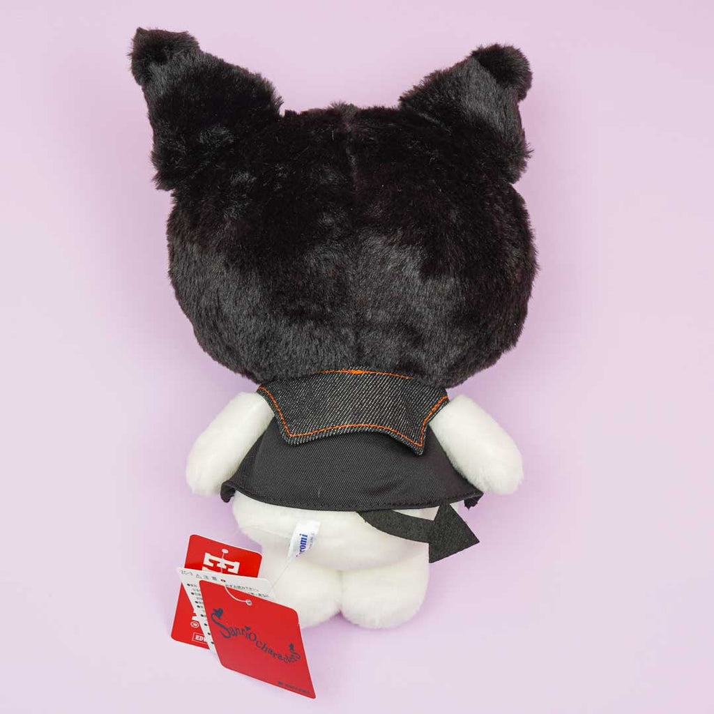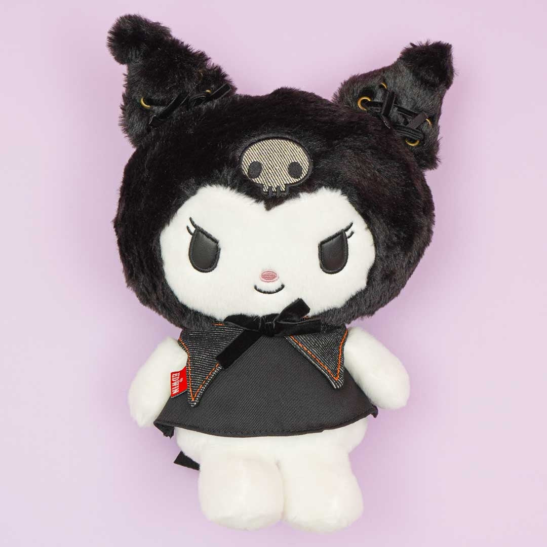 Have fun playing with this kawaii Kuromi plushie! This medium-sized cutie is wearing a special black denim dress that's created by EDWIN — a famous Japanese clothing chain that specializes in denim.