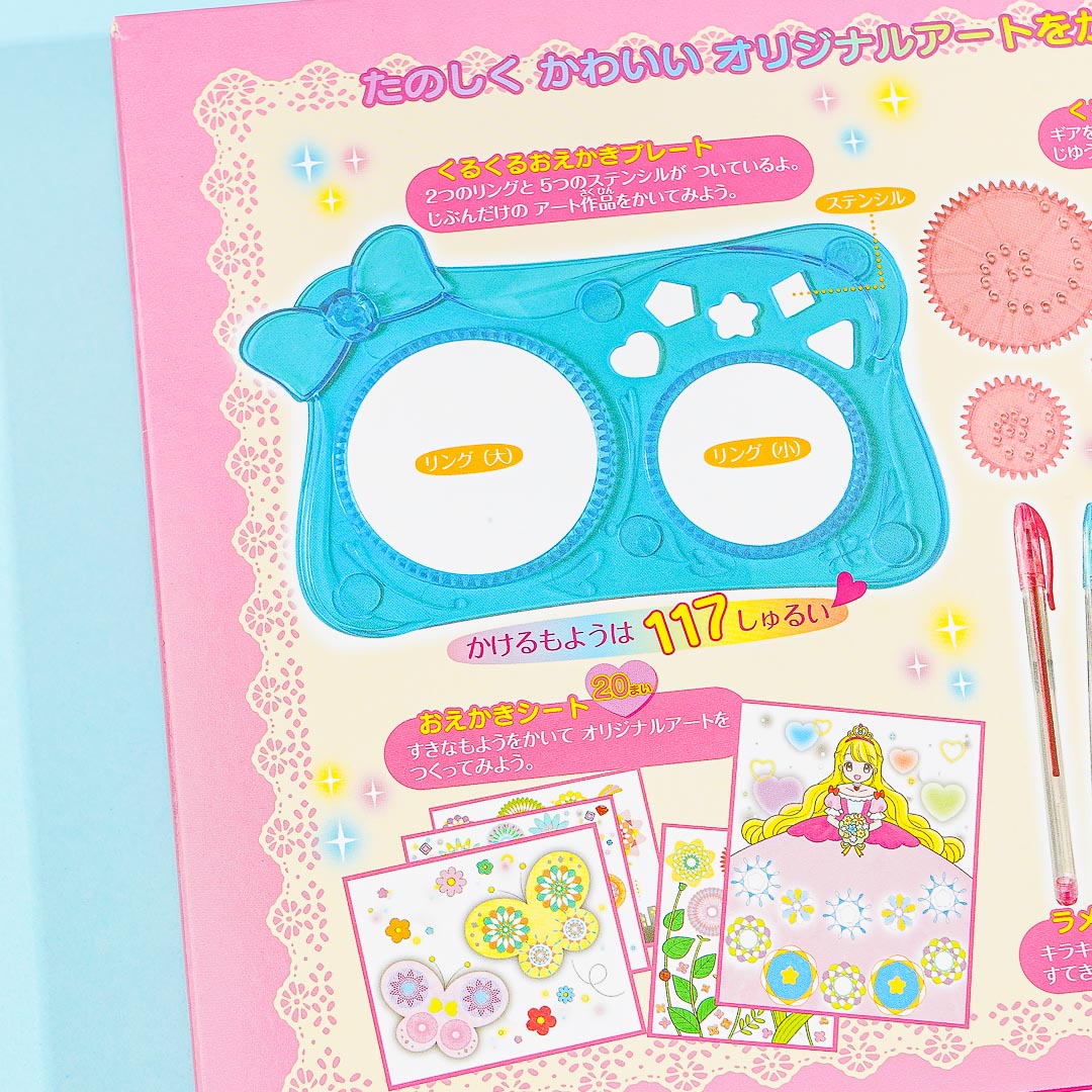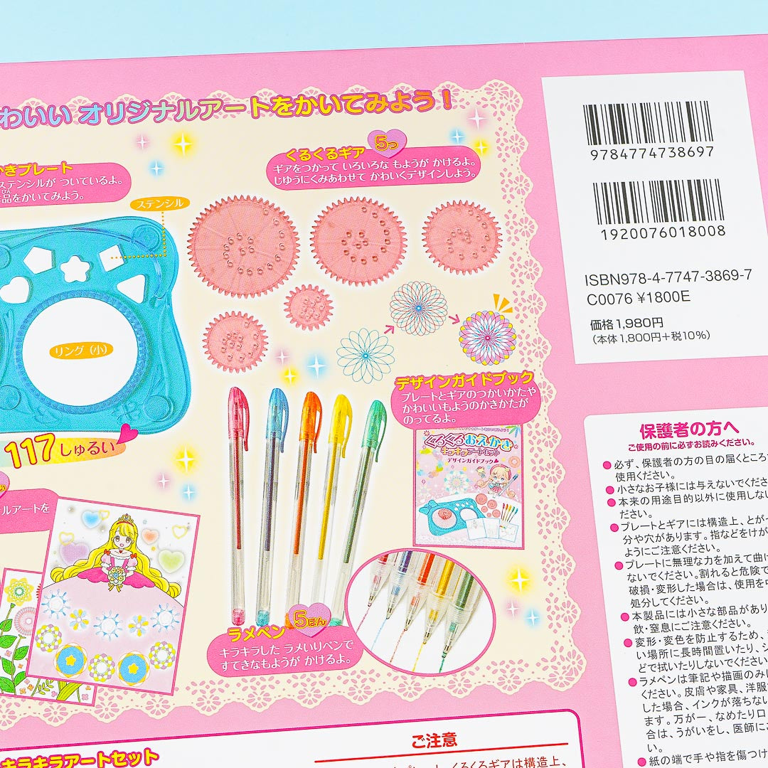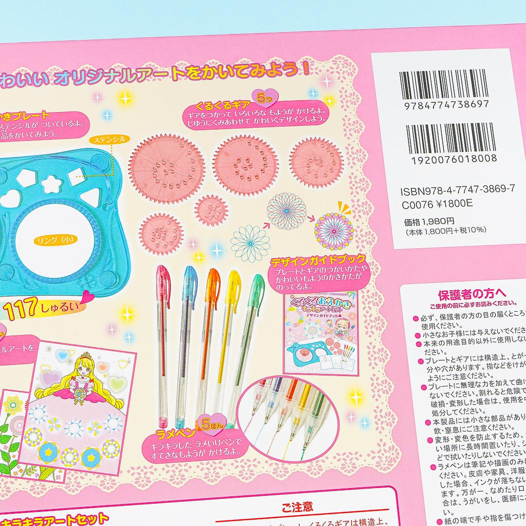 Includes: 5 x glitter pens, 1 x tracing mold, 5 x drawing gears of different sizes, and pattern sheets