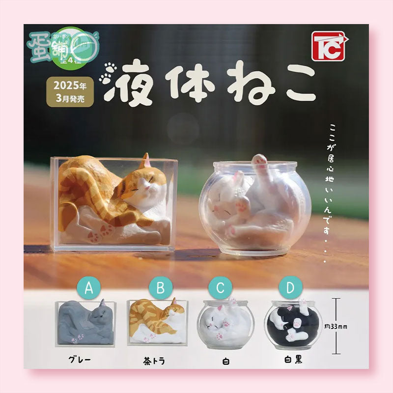 Set this super cute cat figure on your favorite part of your desk. It comes from the Liquid Cat gachapon collection, which showcases cats sleeping in weird places. Try to collect all four cats in the series!