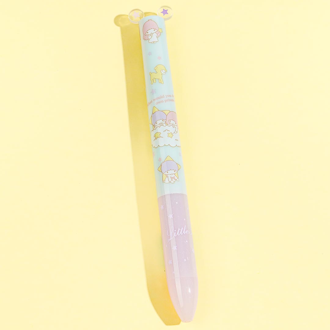 Have fun writing lyrics using this cute pen with protruding ears! It’s decorated with illustrations of the Little Twin Stars playing among the fluffy clouds! You can easily switch between two ink colors while using this kawaii pen as well.
