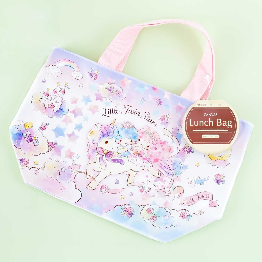 Have a stroll around the park carrying this super kawaii lunch bag! It's made of durable canvas material and features the Little Twin Stars riding on a unicorn. You can also use this as a cute tote!
