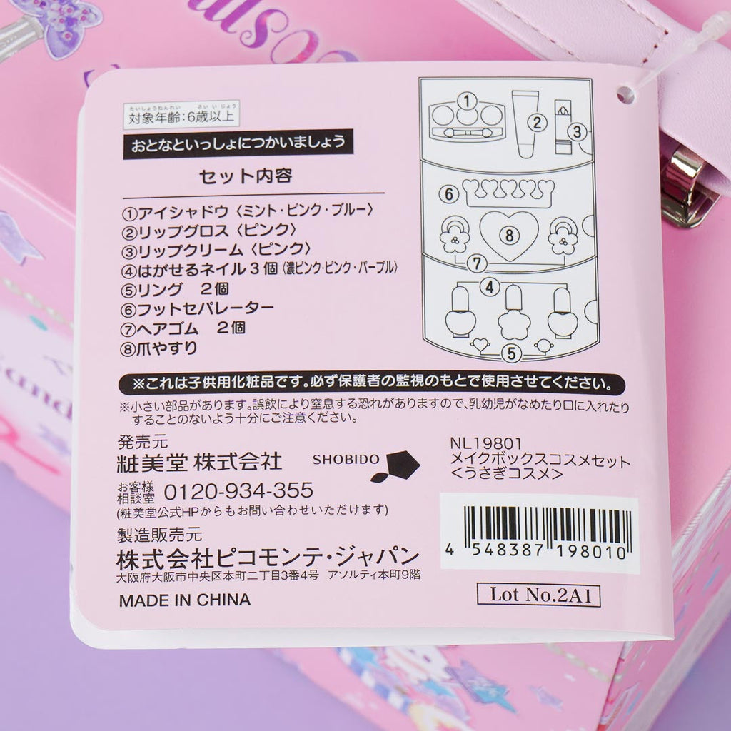 Carry around your beauty products in this kawaii cosmetics box! It has 3 tiers, each one containing items that you can use to make yourself even cuter! You can do your hair, nails, or makeup with this set. The box is decorated with cute prints of bunnies with some sweets and stars.