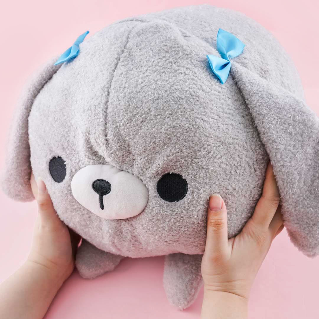 Make this large doggie plushie from “Manmaru Dawan” or “It’s Round” series by Yell World your snuggle buddy! It’s made of fluffy polyester material and is wearing a pair of blue ribbons.