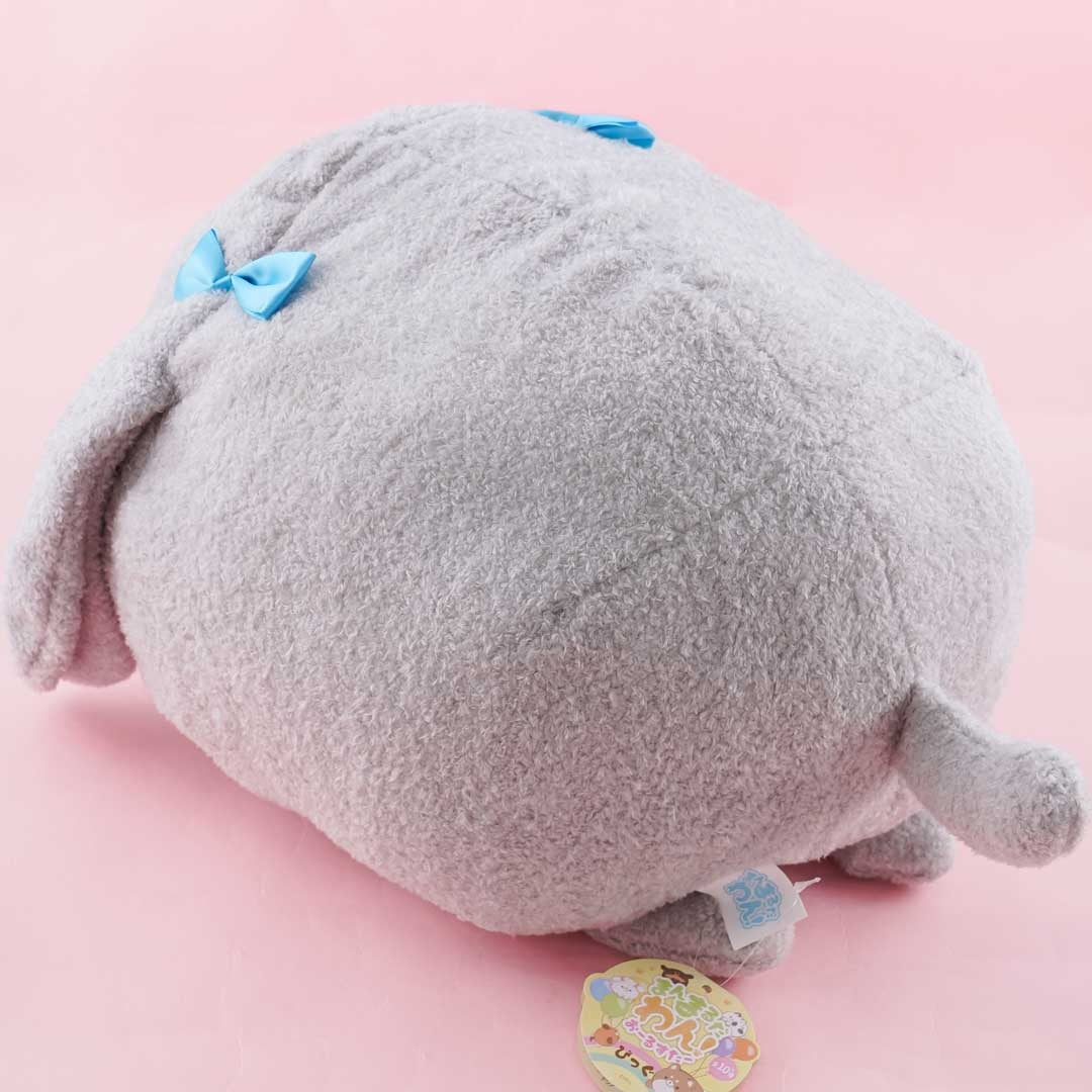 A large round dog plushie from the “Manmaru Dawan” series wearing blue bows