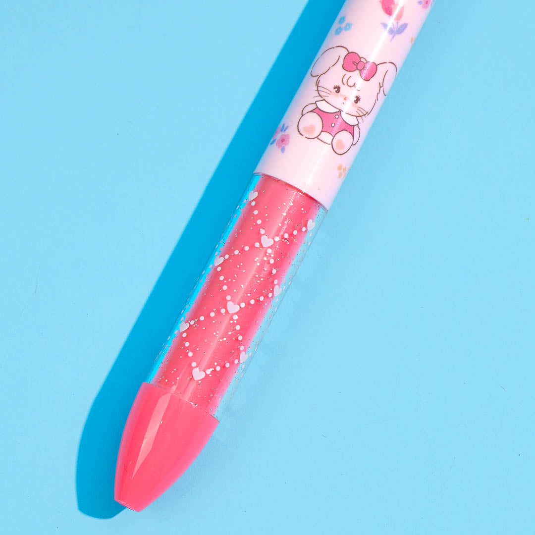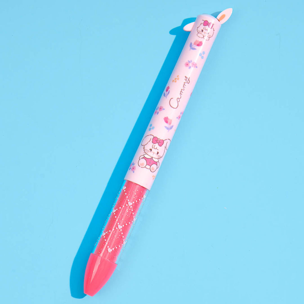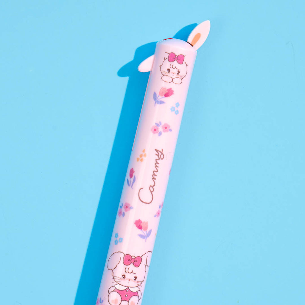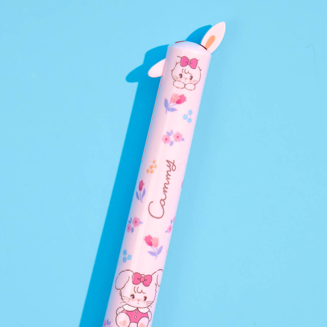 Have fun writing your notes with this super cute and popular mimi pen! It's decorated with prints of Cammy the fluffy rabbit from Mikko Illustrations. This also features two knocks that are shaped like bunny ears. Click on each knock to switch between red and black ink colors!