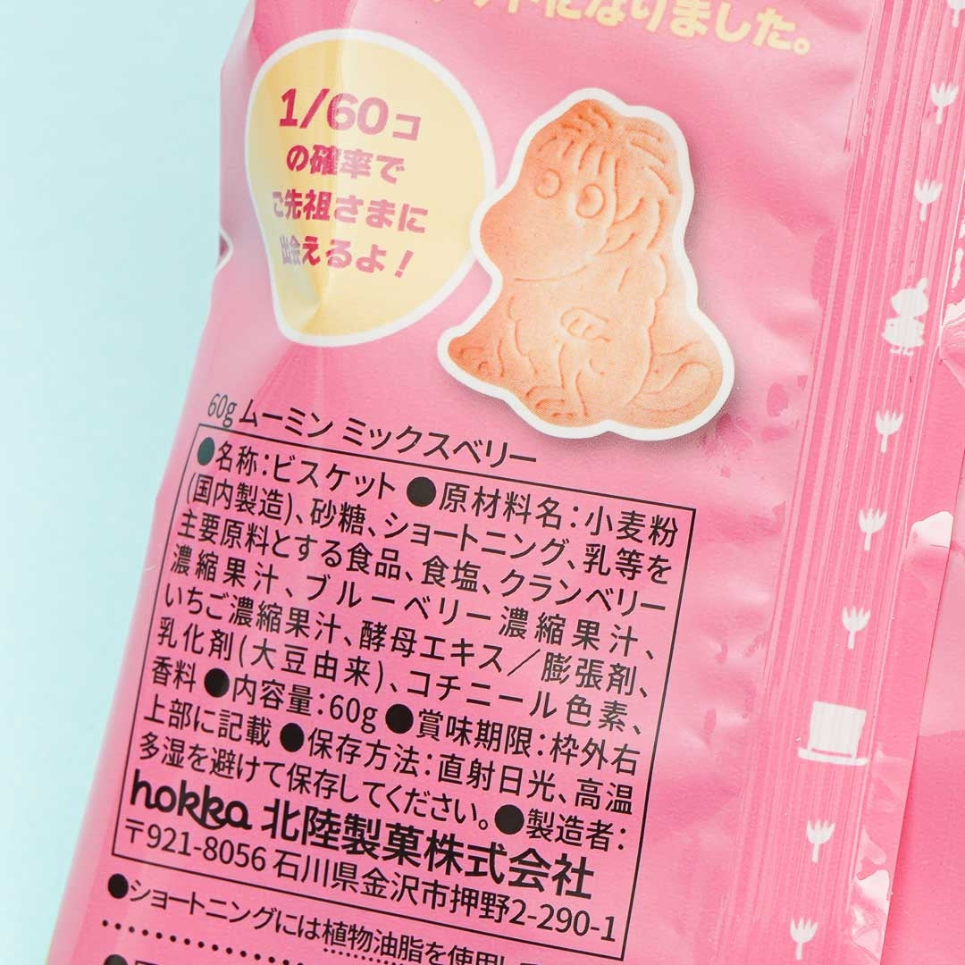 Enjoy snacking on these yummy mixed berry-flavored biscuits! These crunchy treats come in eleven different shapes featuring Moomin characters.