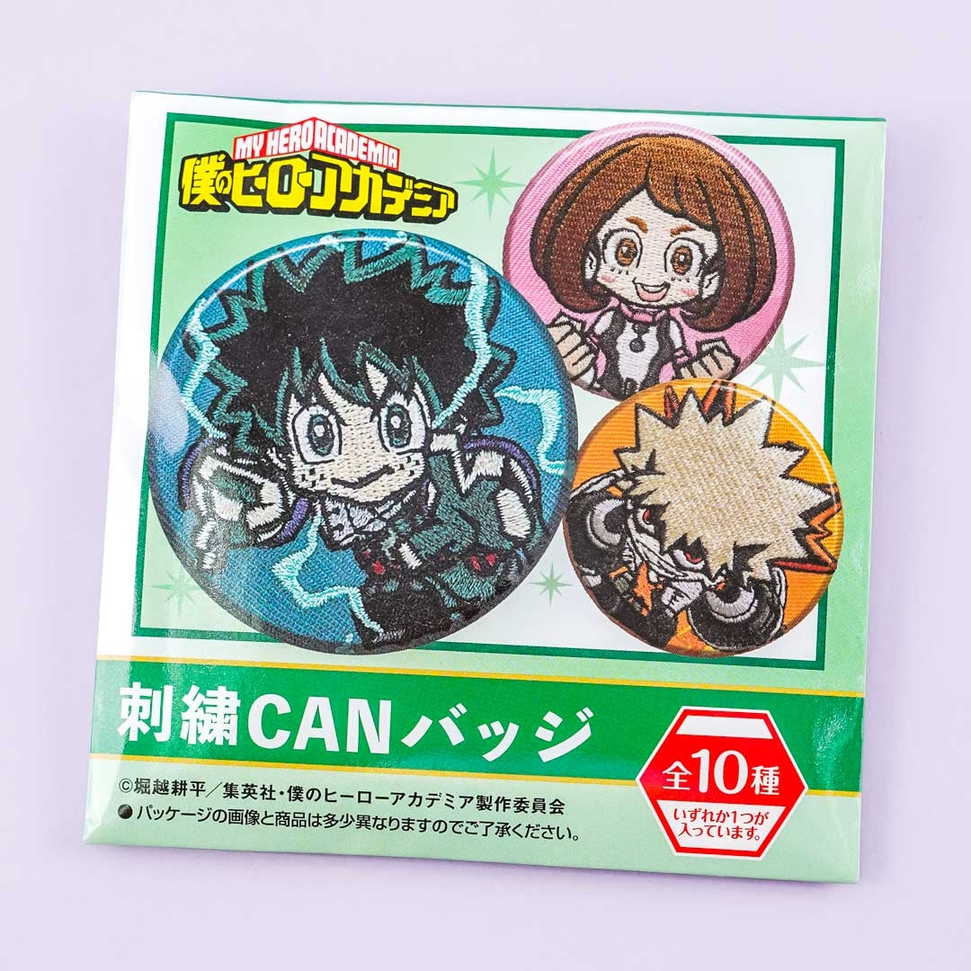 Have a blast collecting this super cute tin badge! Each pin features an embroidered print of your favorite characters from the Japanese manga series, My Hero Academia. Surprise yourself with a random character design when you order.