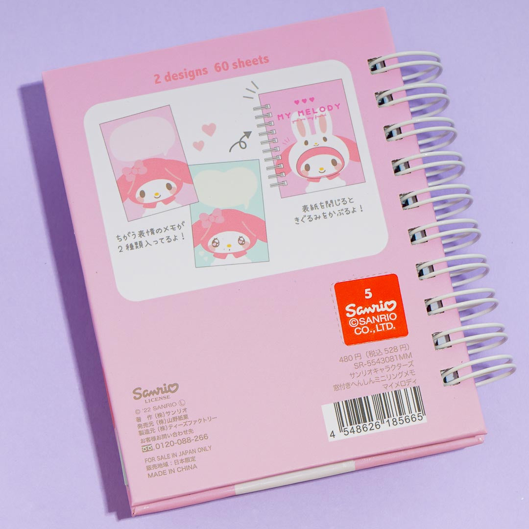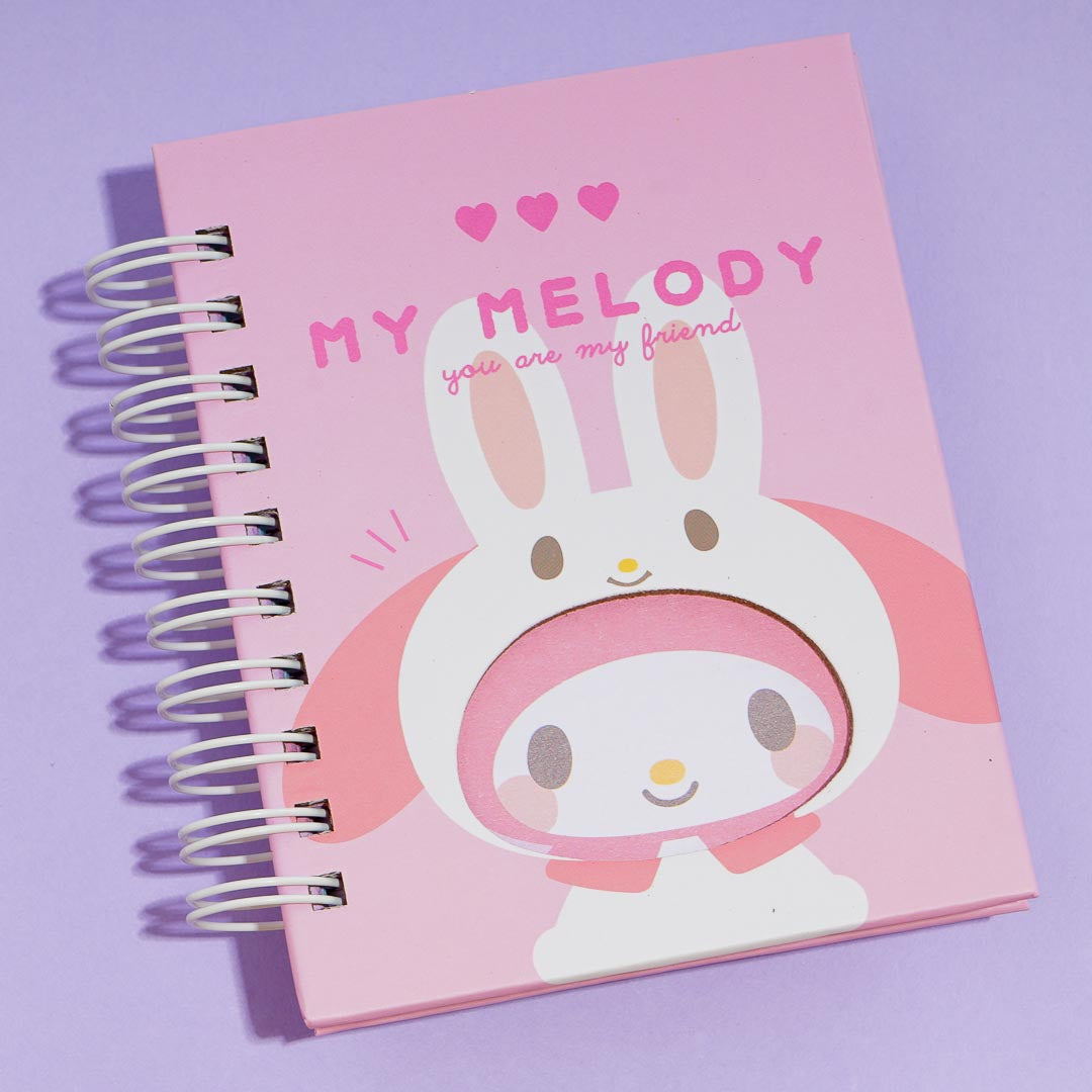 Have fun writing your notes on this kawaii spiral notebook! It has a die-cut cover that changes the My Melody illustration to a bunny look when the notebook is closed.
