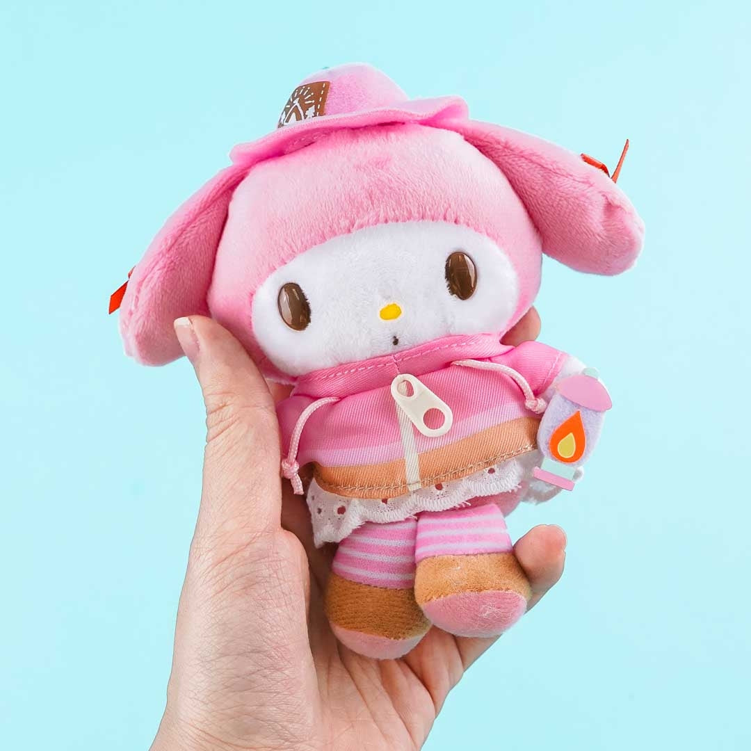Go on adventures together with this kawaii My Melody plushie! This medium-sized cutie is dressed like a camper. You can attach it to your favorite bag with its metal carabiner!