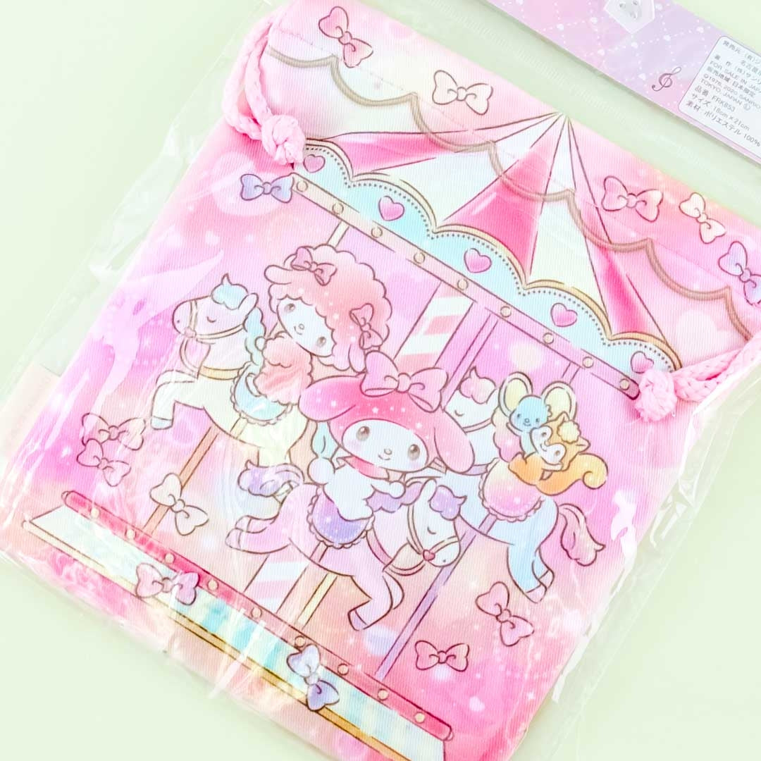 This cute pouch has illustrations of My Melody, My Sweet Piano, and friends while riding a carousel! You can place your trinkets and other small accessories inside this drawstring bag that's made of soft polyester. Just pull the strings to keep your items secured!