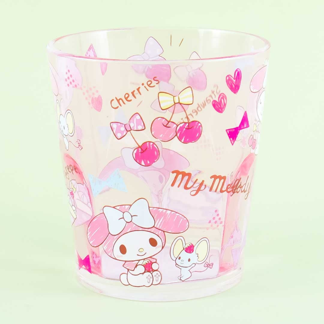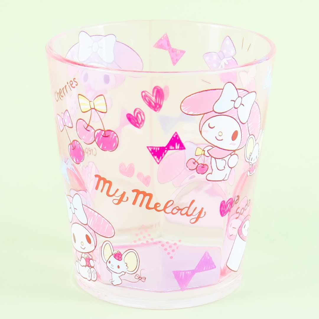 Use this kawaii transparent cup for your next picnic! It features My Melody with doodles of bows, hearts, and cherries. The cup is made of sturdy transparent acrylic material. Not recommended for microwave and dishwasher use.