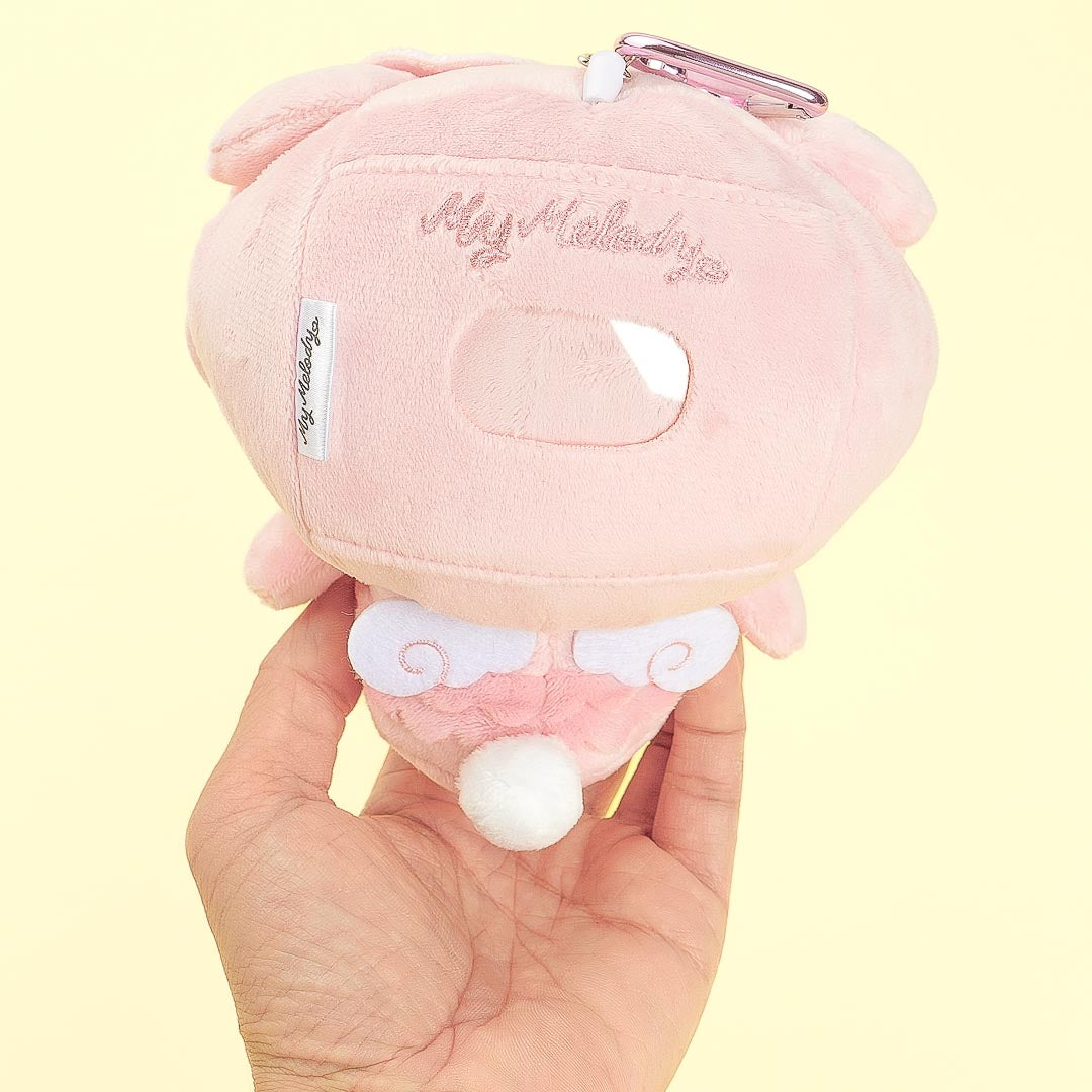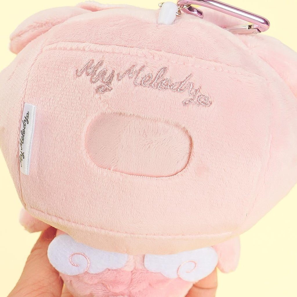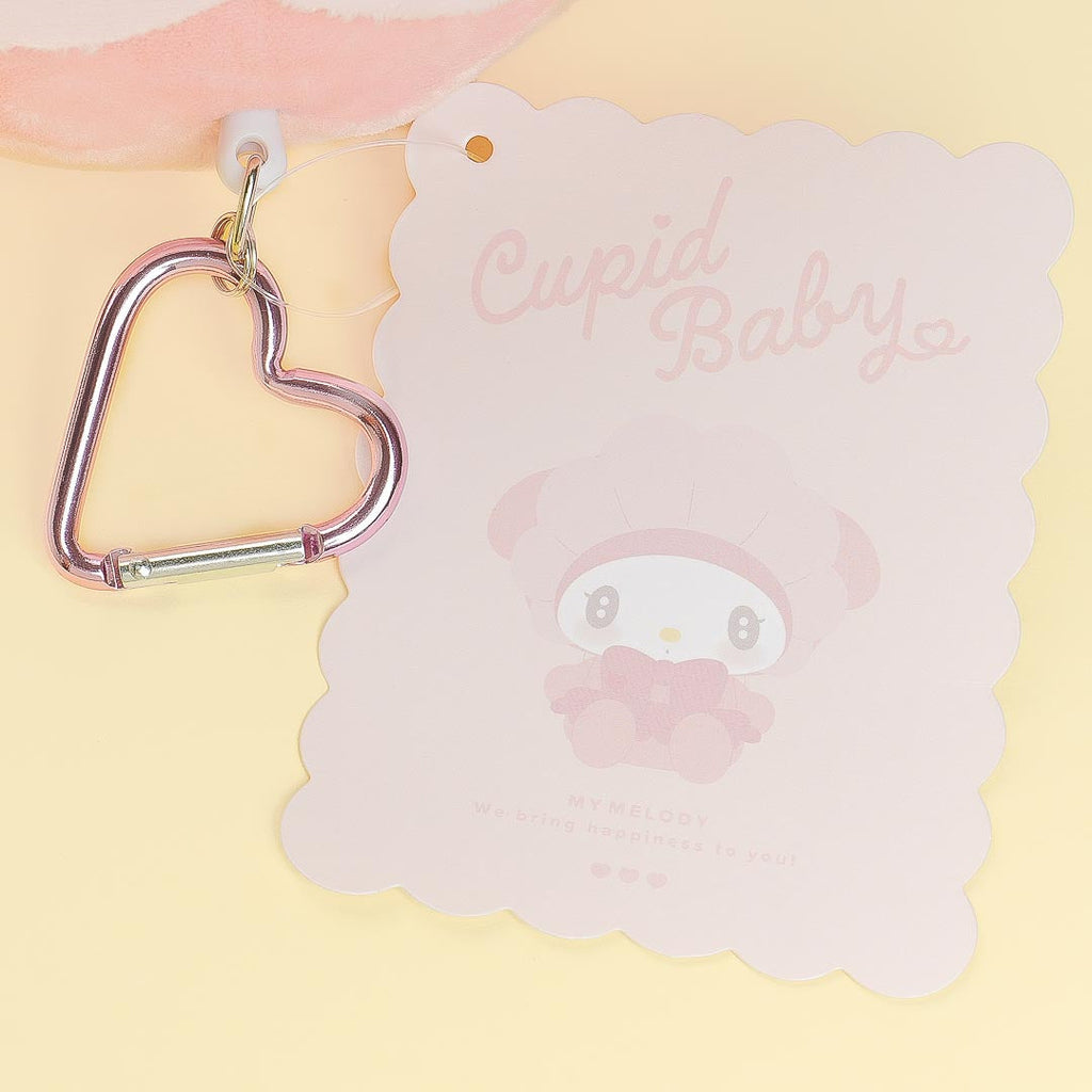 This My Melody plushie pass case is perfect for keeping your ID or bus card! It looks like a baby Cupid wearing a onesie. You can attach this pass case to your bag using the heart-shaped metal carabiner.