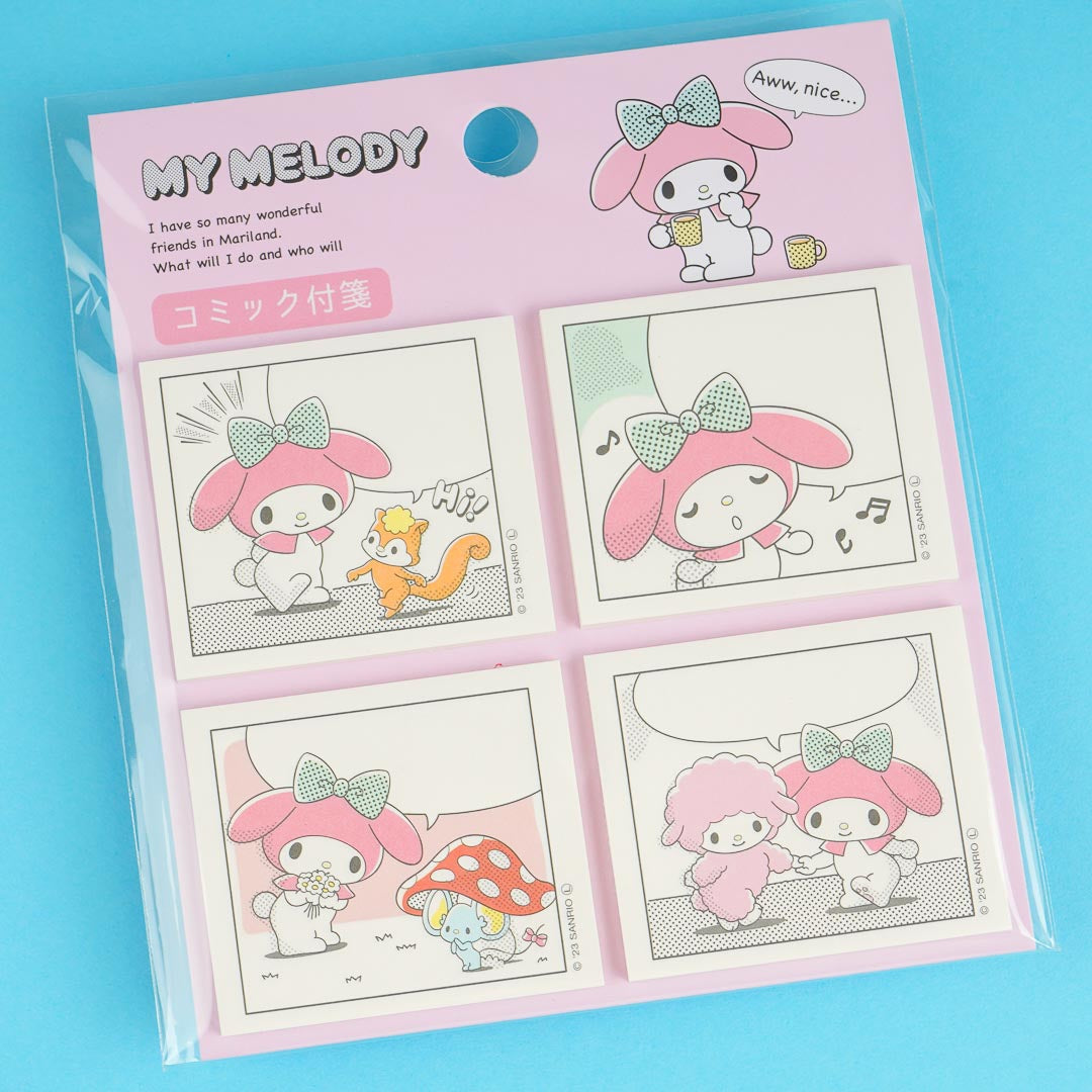 This kawaii sticky note set is perfect for writing short letters to yourself! It features comic-style illustrations of My Melody and My Sweet Piano with text bubbles.