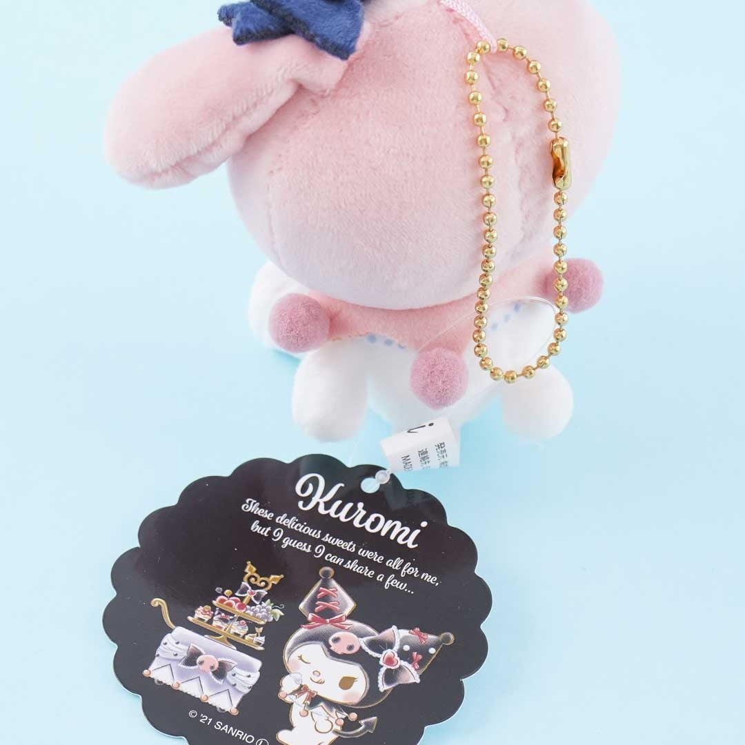 My Melody is ready to party wearing a black bow collar and a matching pair of black hair ribbons! Snuggle up with this medium-sized cutie that’s made of fluffy polyester and can be attached to your fave bag using its included removable ball chain.