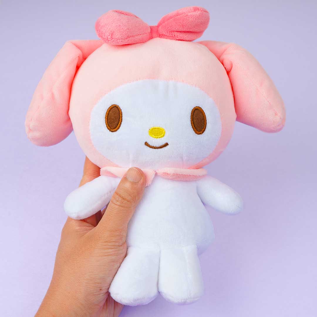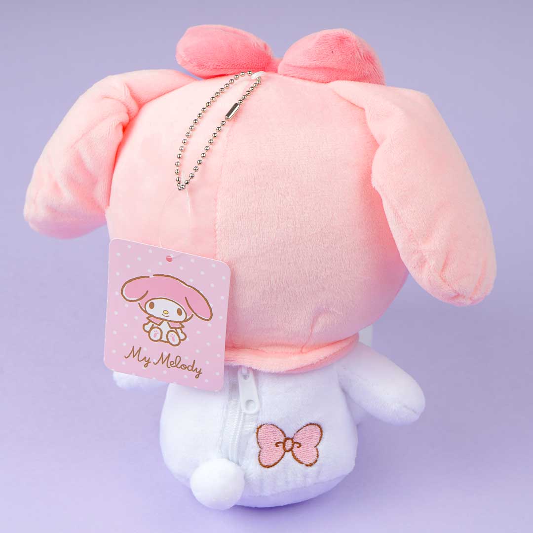 Place your small knick knacks inside this kawaii My Melody plushie! It comes with a zippered pocket and a removable ball chain. The medium-sized plushie even has ribbon embroidery at the back for added cuteness.