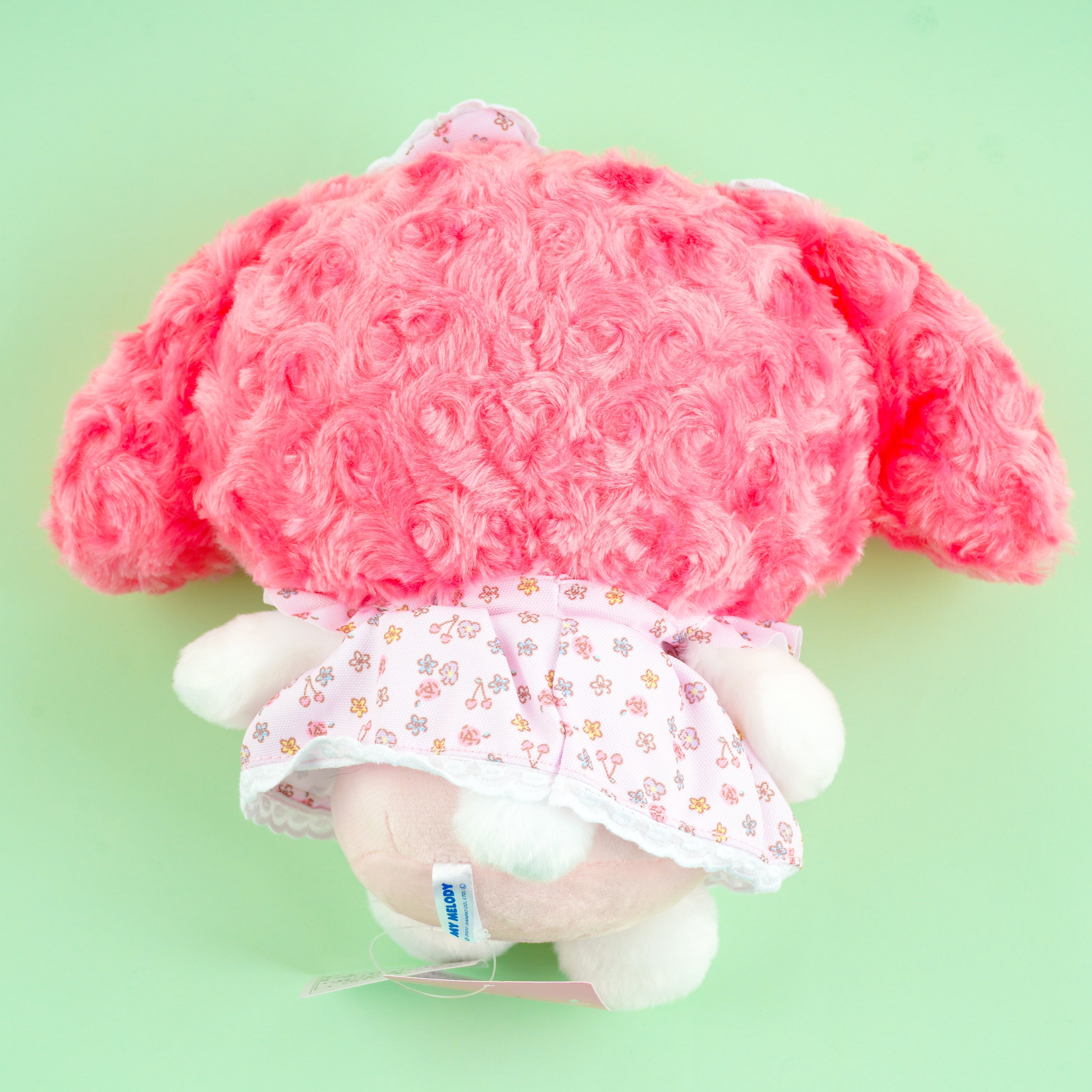Enjoy playing with this kawaii My Melody plushie! This sitting cutie is wearing a dress and a bow that has matching prints of florals inspired by the flowers from her hometown in Mariland.