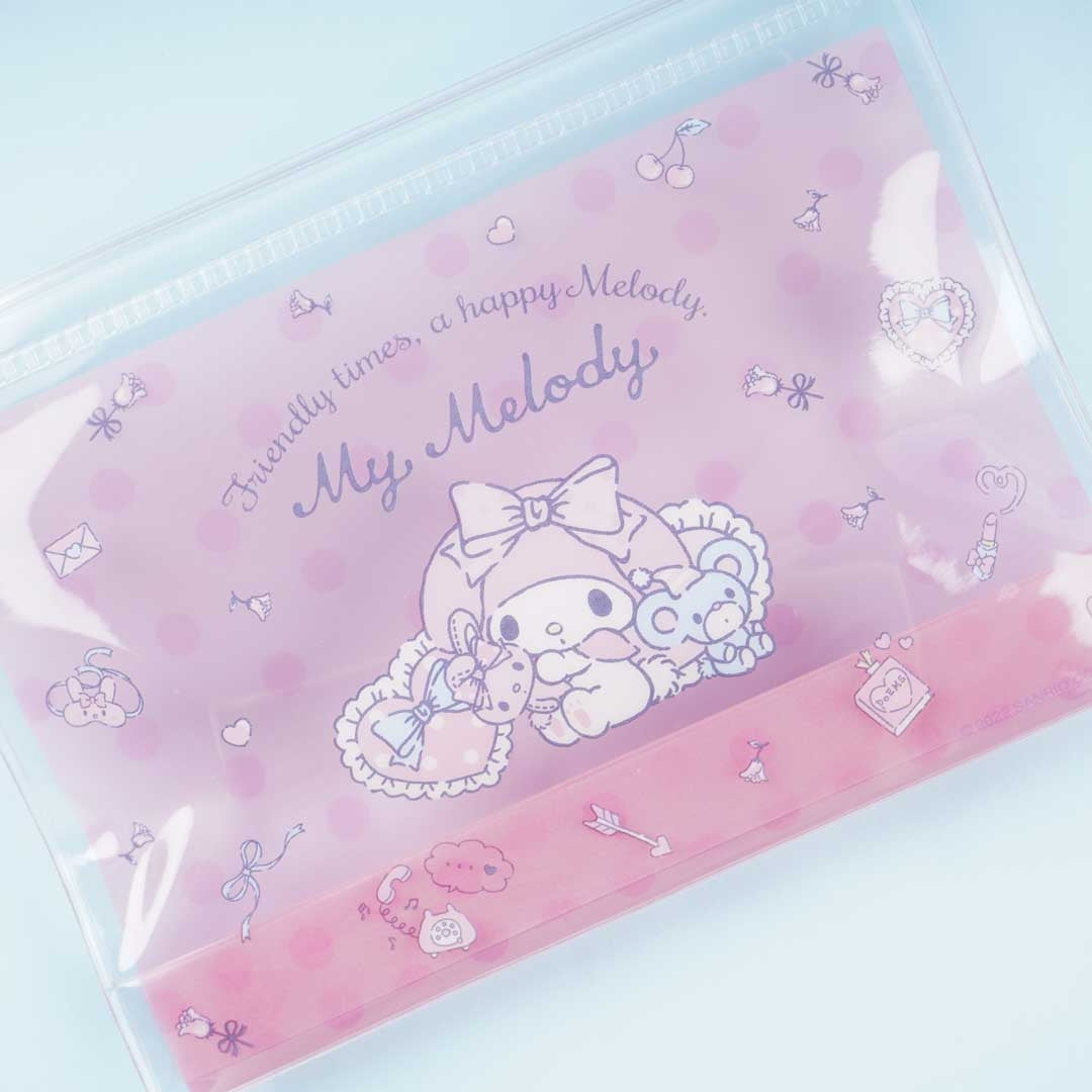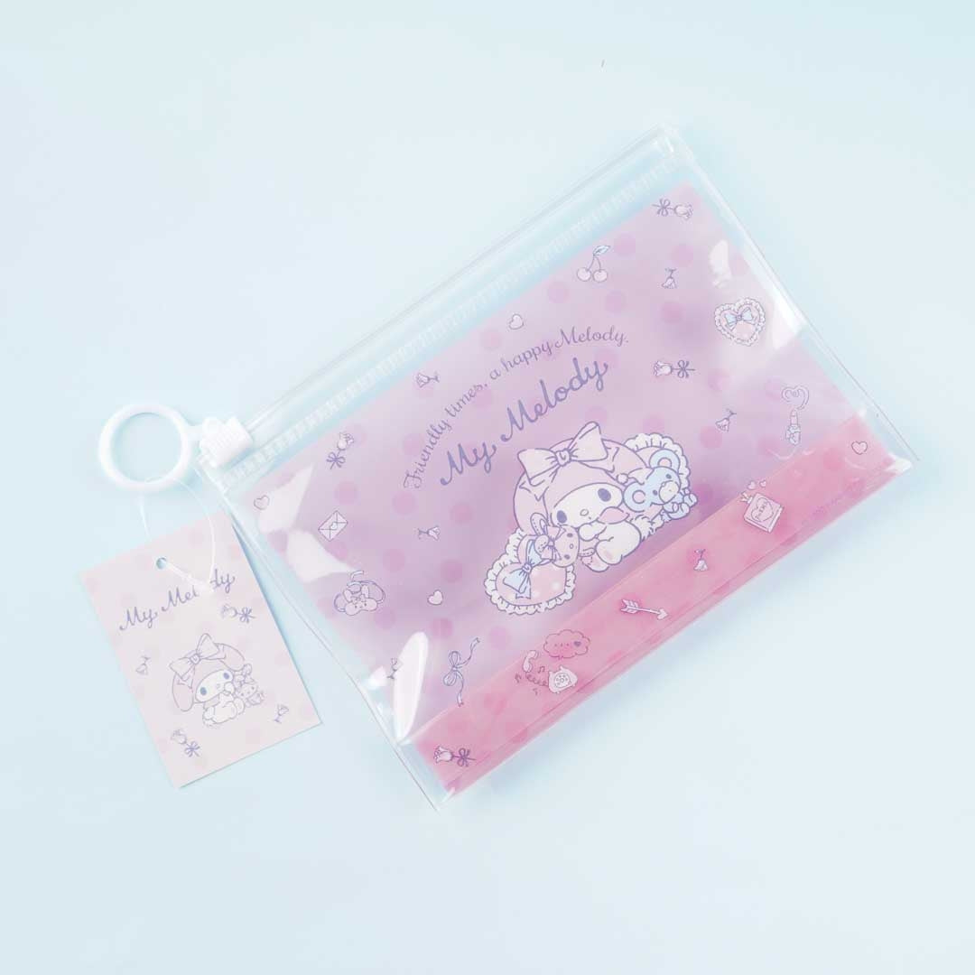 Organize your knick-knacks with the help of this super cute pouch! This transparent pouch is decorated with prints of My Melody surrounded by letters, roses, and other cute things. It has a slider closure to keep your things safe and secure.
