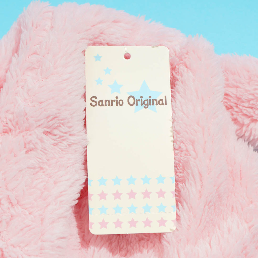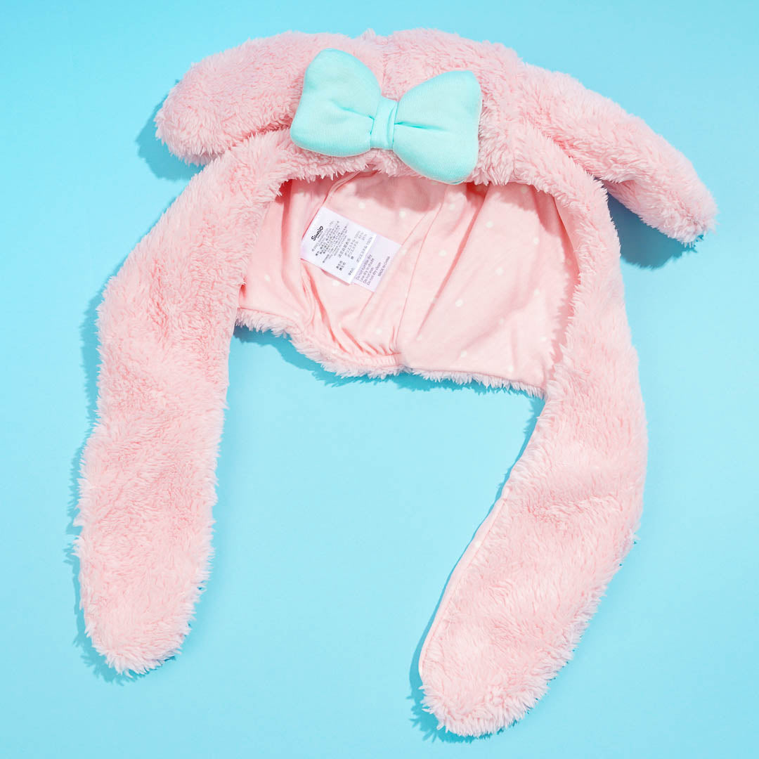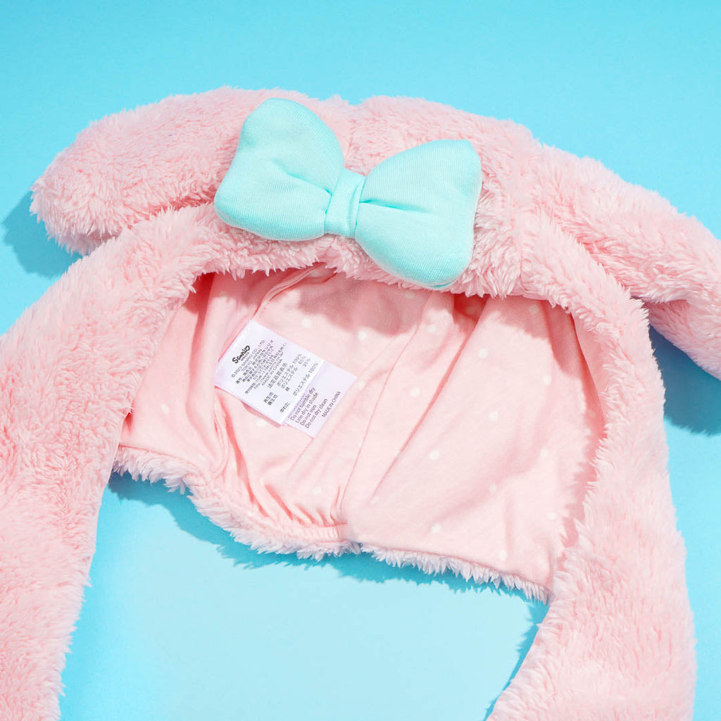 Keep yourself warm during cold winter days with this hooded scarf that looks like My Melody's ears. It's made from soft and fluffy material and has a cute ribbon on top. The long sides can be used to cover your ears or your neck.