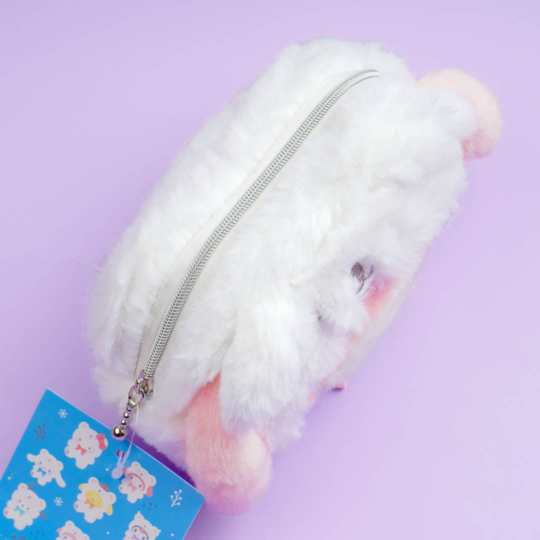 Store your lippies, cosmetics, and trinkets inside this kawaii pouch! It resembles My Melody wearing a fluffy polar bear onesie. This zippered pouch has multiple inner compartments so you can keep your things organized.