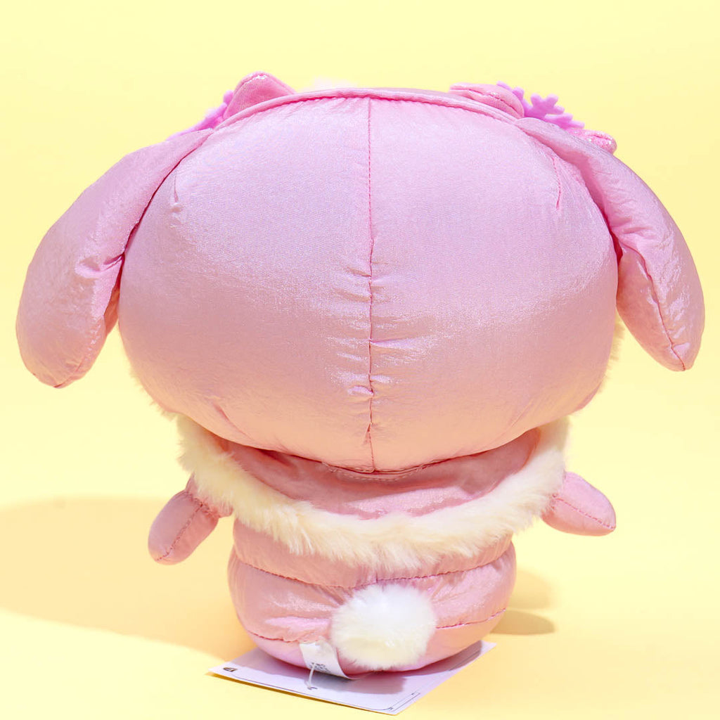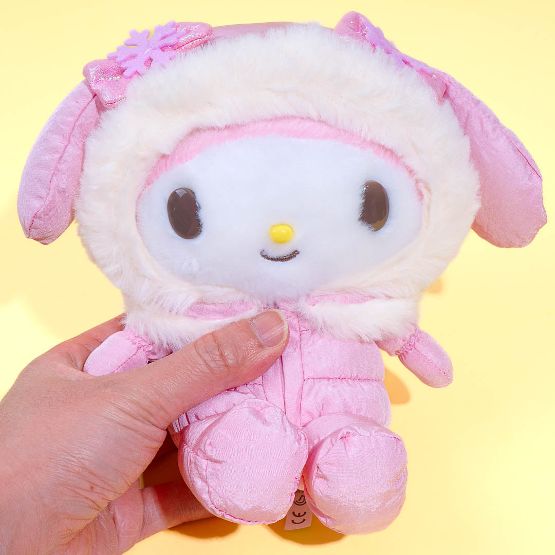 Add a touch of winter kawaii to your bedroom with this super cute My Melody plushie! It's wearing a fluffy quilted jumpsuit and cute glittery snowflake ribbons. This small stuffed toy is made of soft polyester and comes from the Sanrio Fluffy Winter series.
