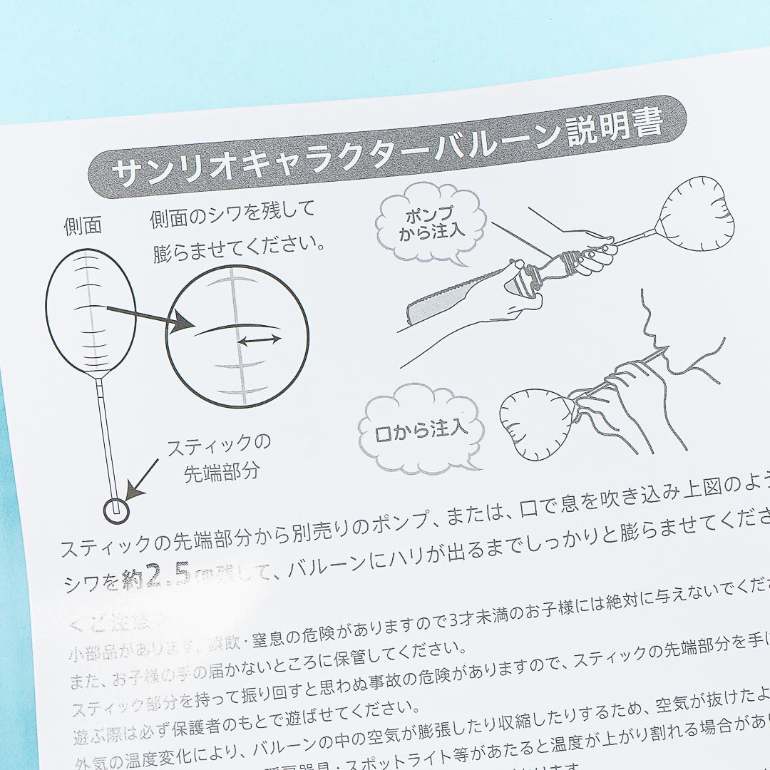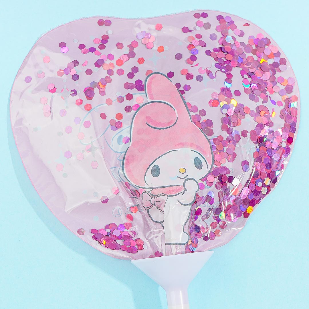 Add a touch of kawaii to your party with this super cute balloon! It showcases cute illustrations of My Melody and her friend Flat. This balloon is also filled with glitter that moves when you shake it. To inflate the balloon, all you have to do is blow air through the stick!