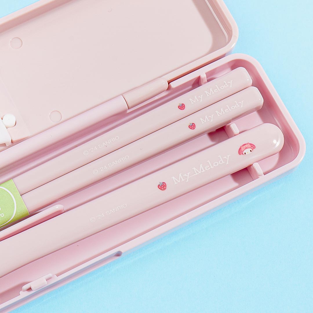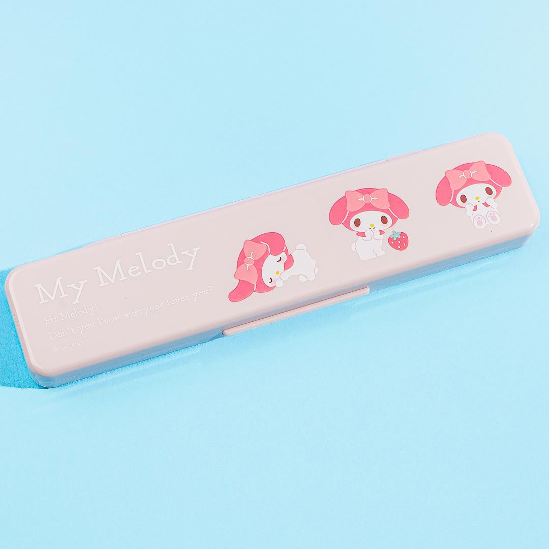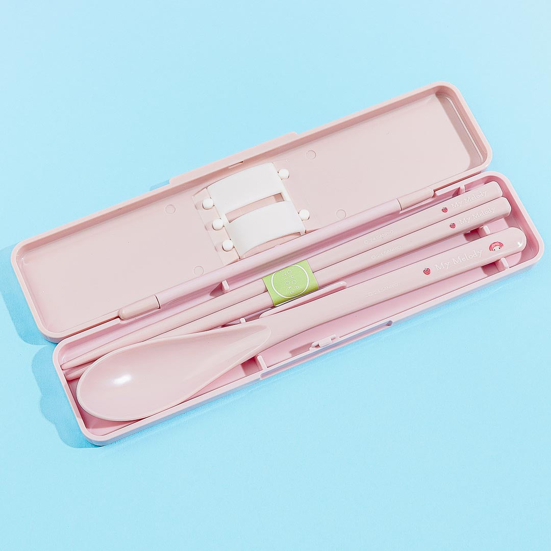 Bring this kawaii utensils kit to school or work with your bento! It comes with a reusable spoon, a pair of reusable chopsticks, and a case with flip-top lid decorated with cute illustrations of My Melody spending her day being happy! The entire kit also contains silver ion properties that stop bacterial growth.