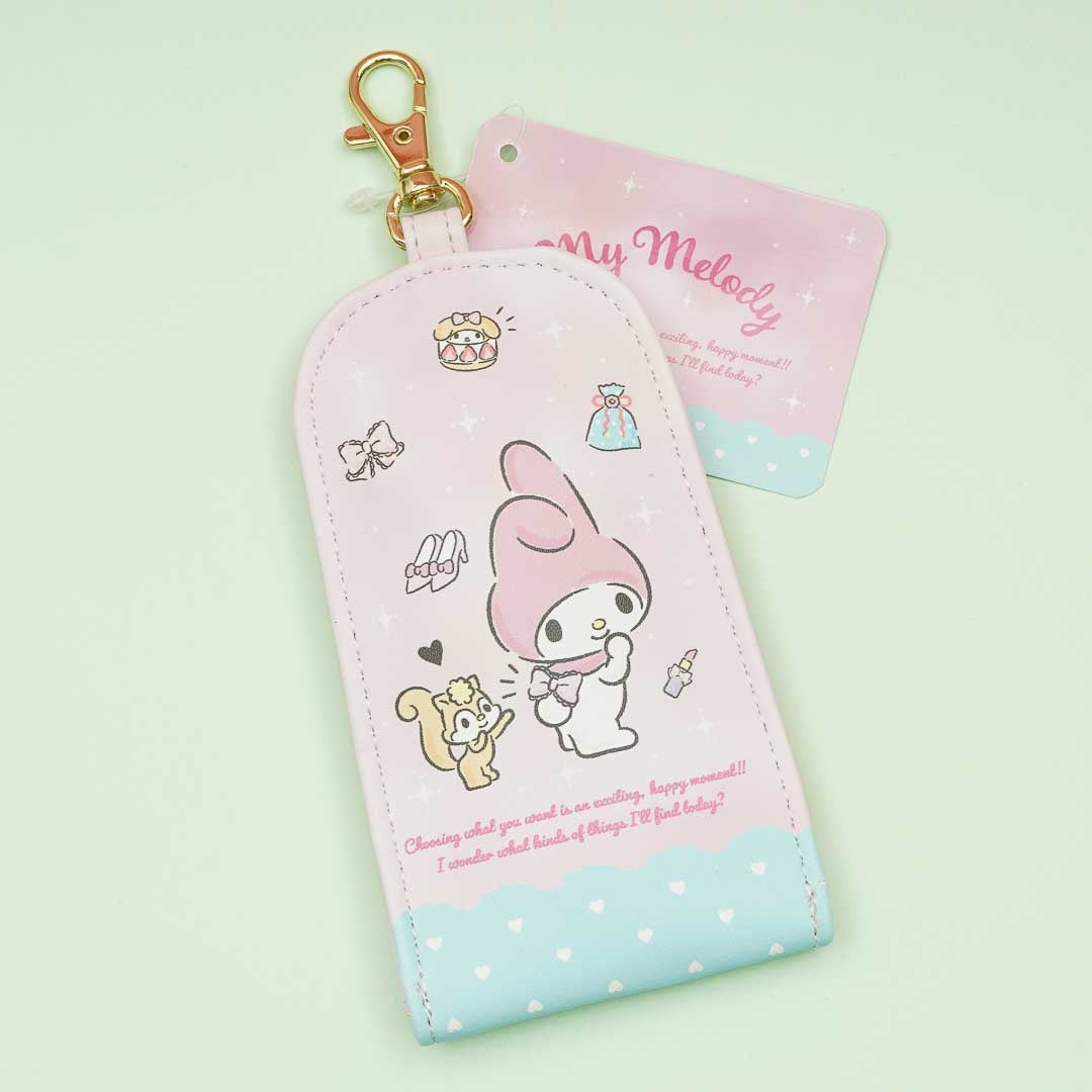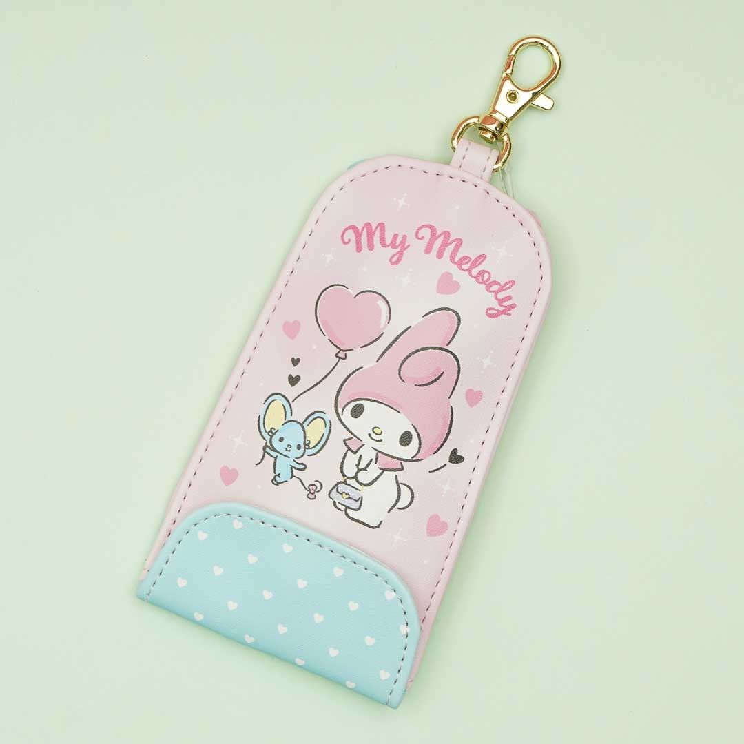 A super kawaii key case illustrated with My Melody surrounded by hearts