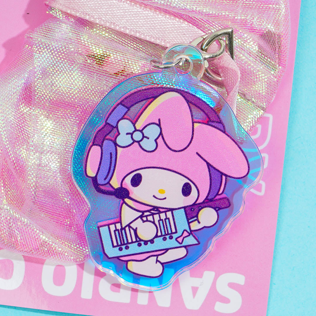 This super kawaii hair tie is made of shiny holographic material. Use it to tie up your hair into a cute pony tail! It also has a kawaii My Melody acrylic charm.