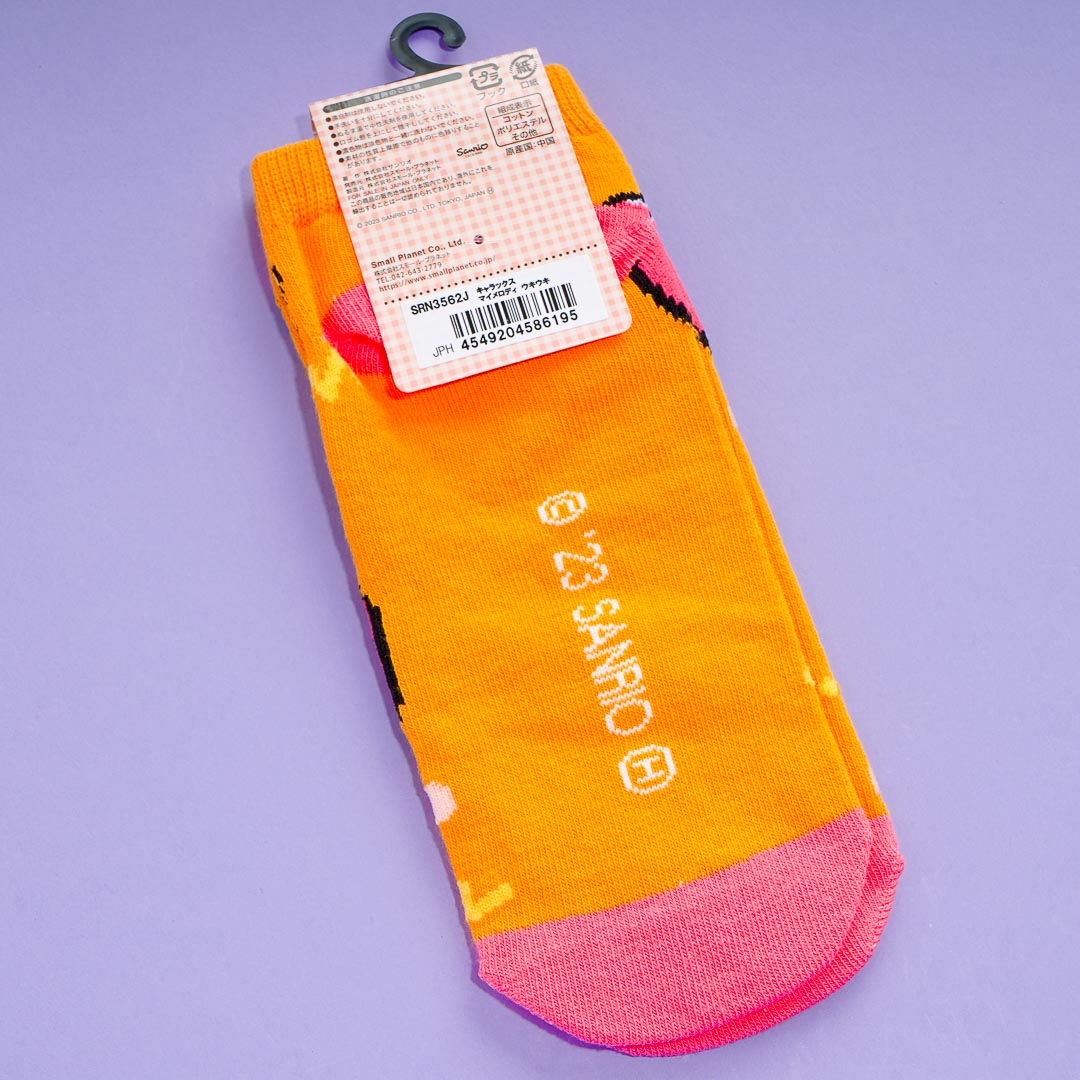 Keep your feet warm and cute with this pair of ankle-length orange jacquard socks! It also features a happy and kawaii My Melody print.