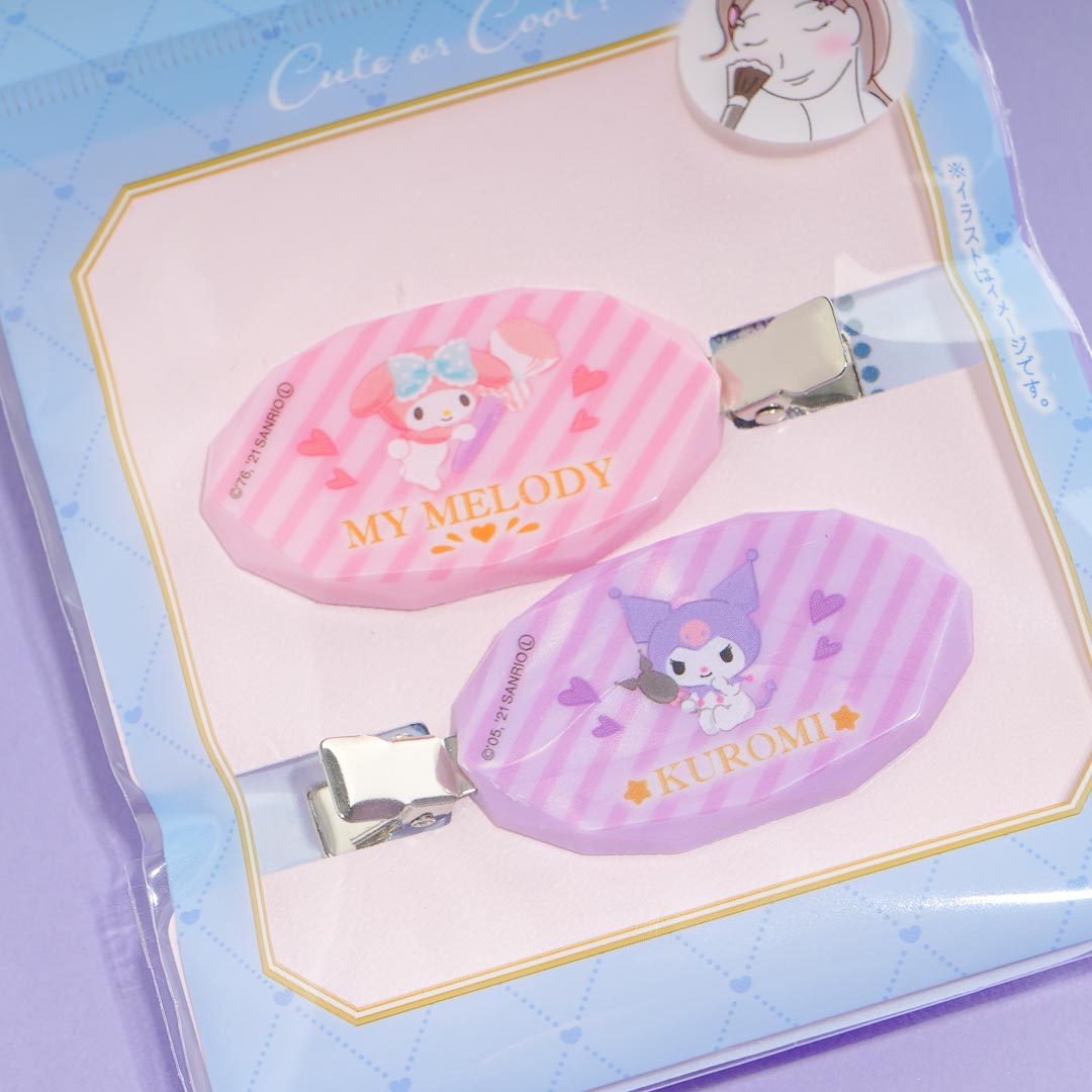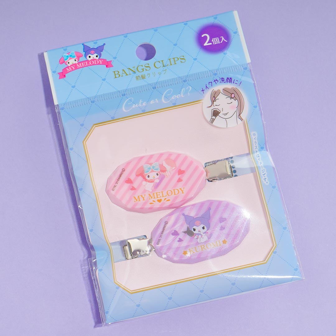 Keep your bangs away from your face while you do your makeup! This clip set comes in a flat shape so it won't leave creases on your hair. The striped design showcases the Sanrio rivals, My Melody and Kuromi.