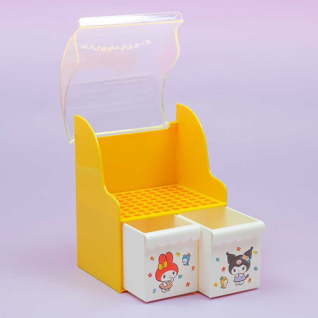 This kawaii chest keeps your accessories and small trinkets organized. It has an upper partition with a transparent dome cover. It also features two mini pull-out drawers showcasing Kuromi and My Melody together with two cute chirping birds.