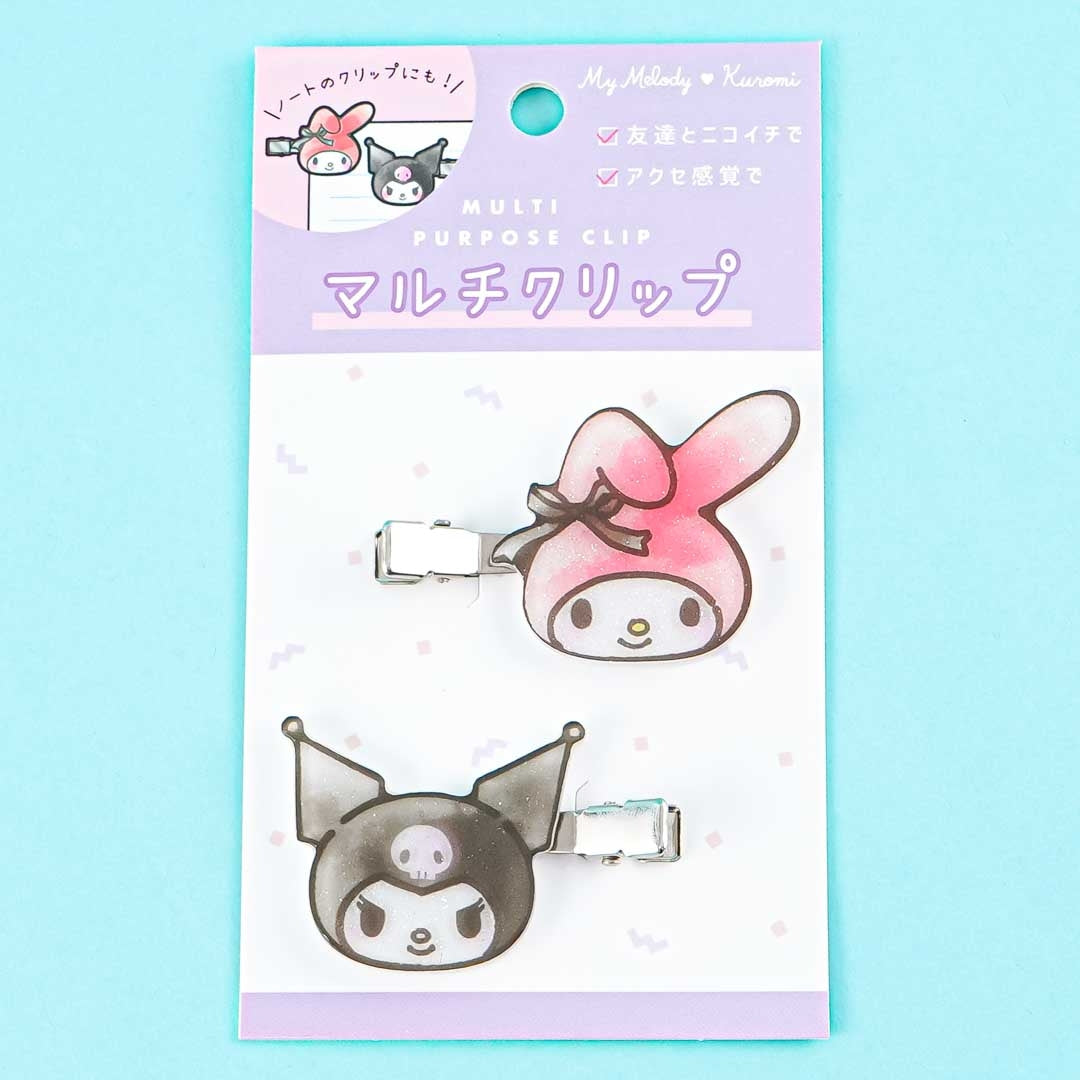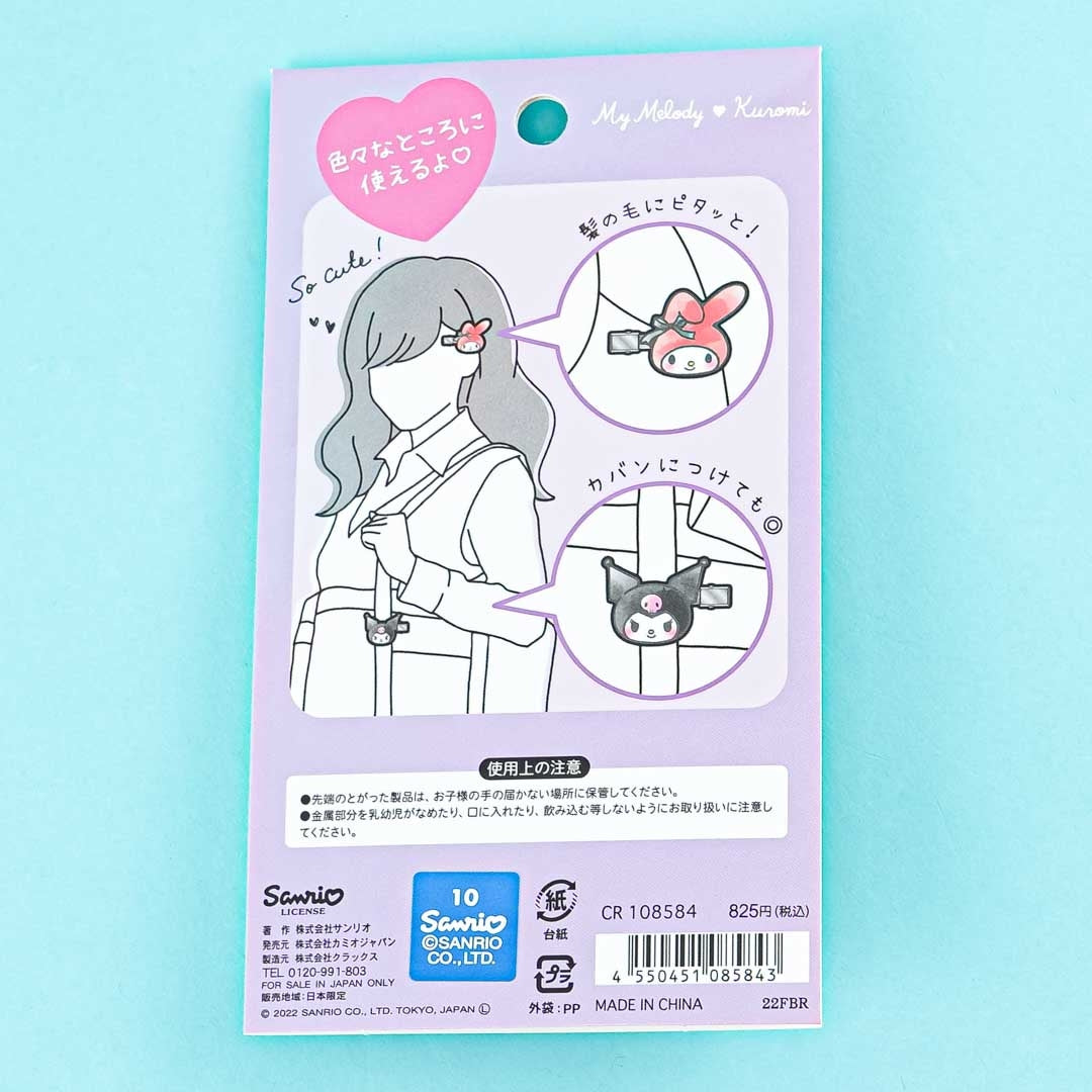 Keep your hair off your face by using these die-cut shimmery clips! These are made of sturdy plastic and feature My Melody and Kuromi! You can also use this to clip together important documents or even to decorate the straps of your backpack.