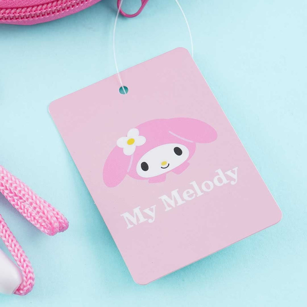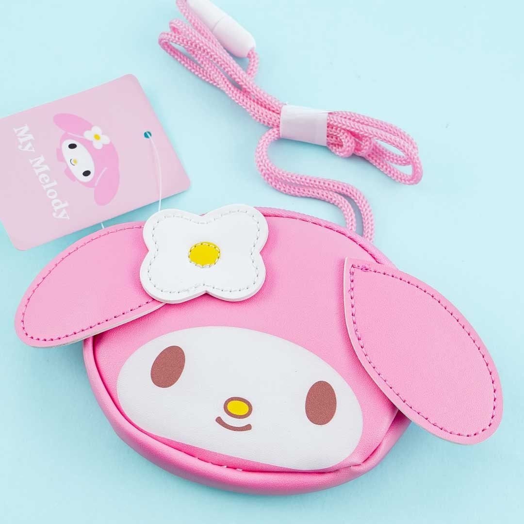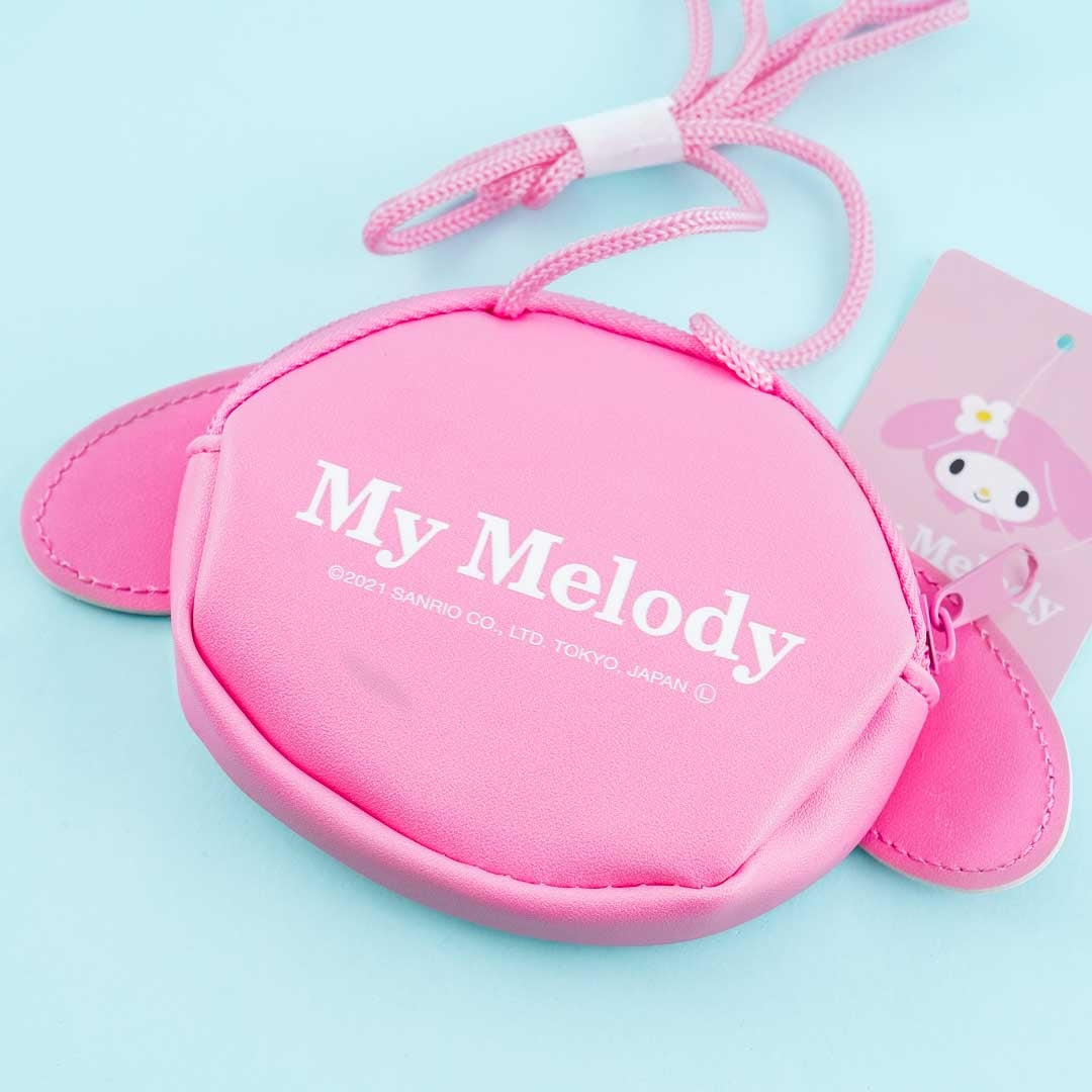 A cute zippered My Melody pouch that can be hung from the neck with its strap