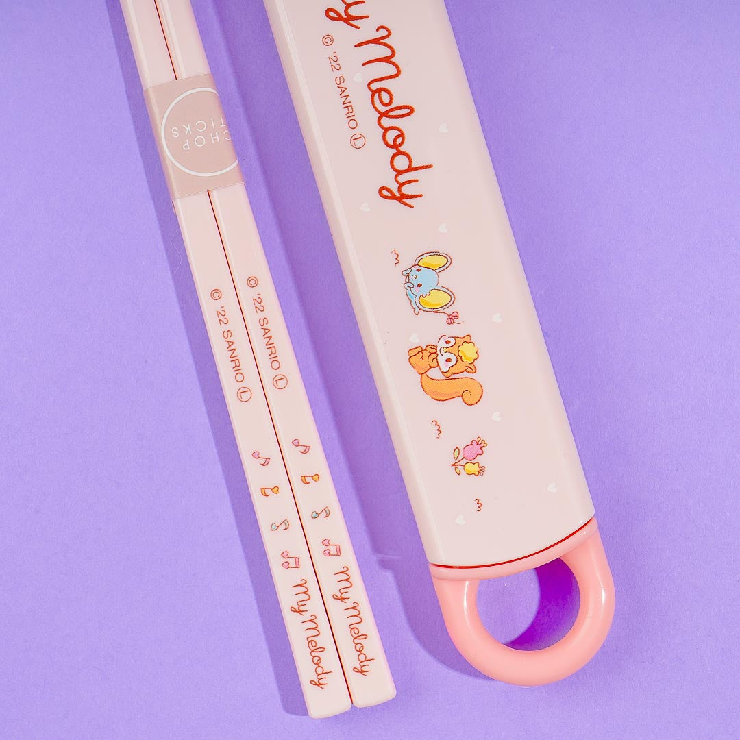 This super cute pair comes in a case with a sliding lid that’s decorated with prints of My Melody playing the piano for her friends! Use these kawaii chopsticks when eating your favorite bento lunch. The set is recommended for kids’ use and is dishwasher-safe!