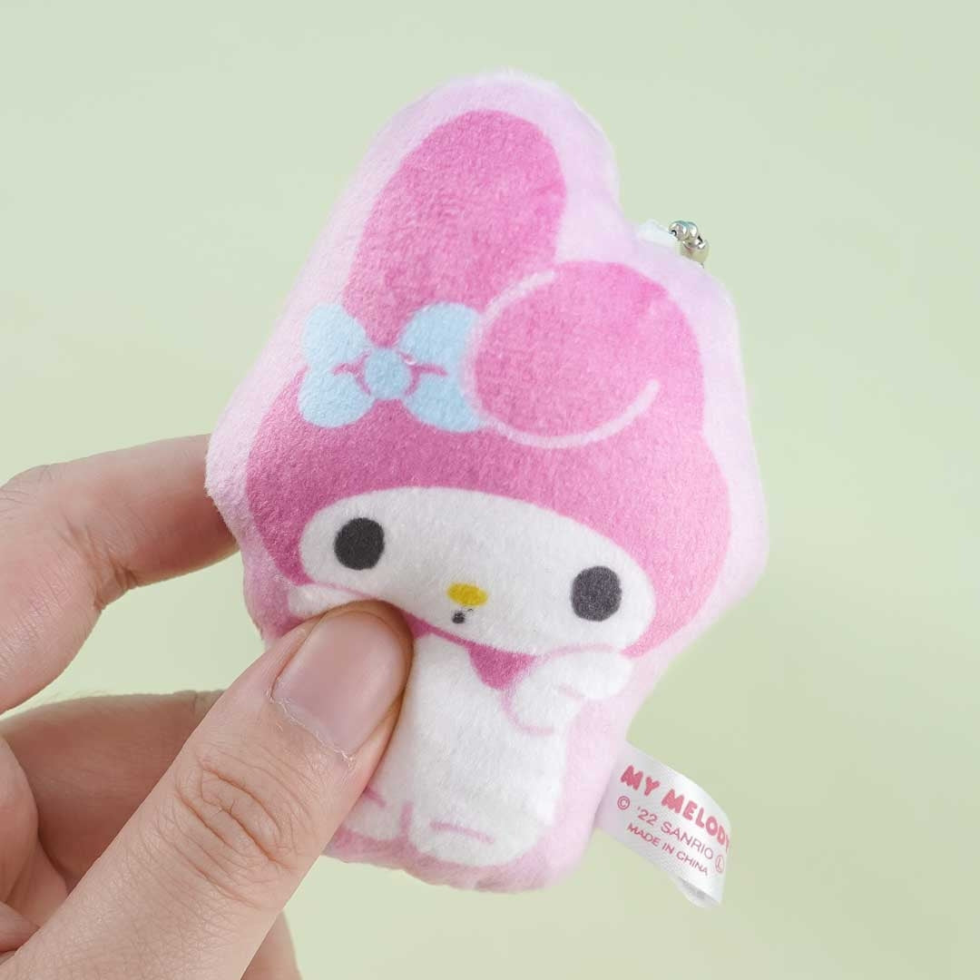 Go traveling together with this kawaii die-cut My Melody plushie charm. This mini-sized cutie is super soft to touch! You can attach it to your favorite bag with its removable ball chain.