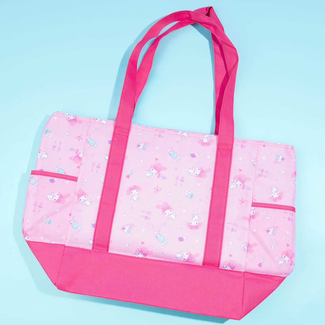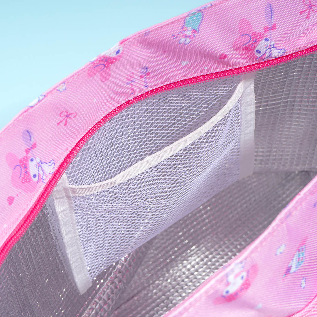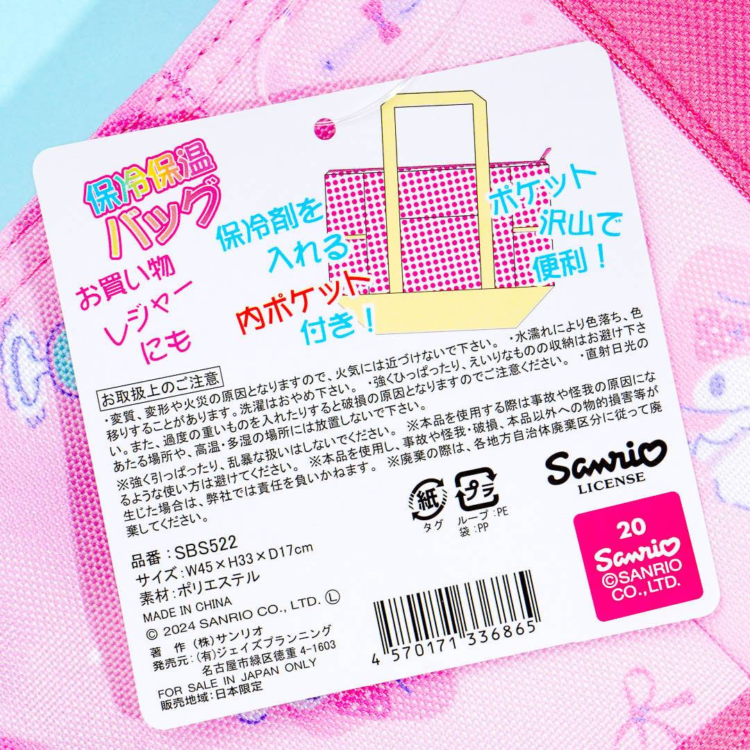 This kawaii shoulder bag is decorated with super cute prints of My Melody about to eat a giant pudding! Keep snacks, drinks, and fruits you’ve bought from the store fresh by placing them inside. The roomy bag is insulated and lined with aluminum to keep your groceries or packed food hot or cold!